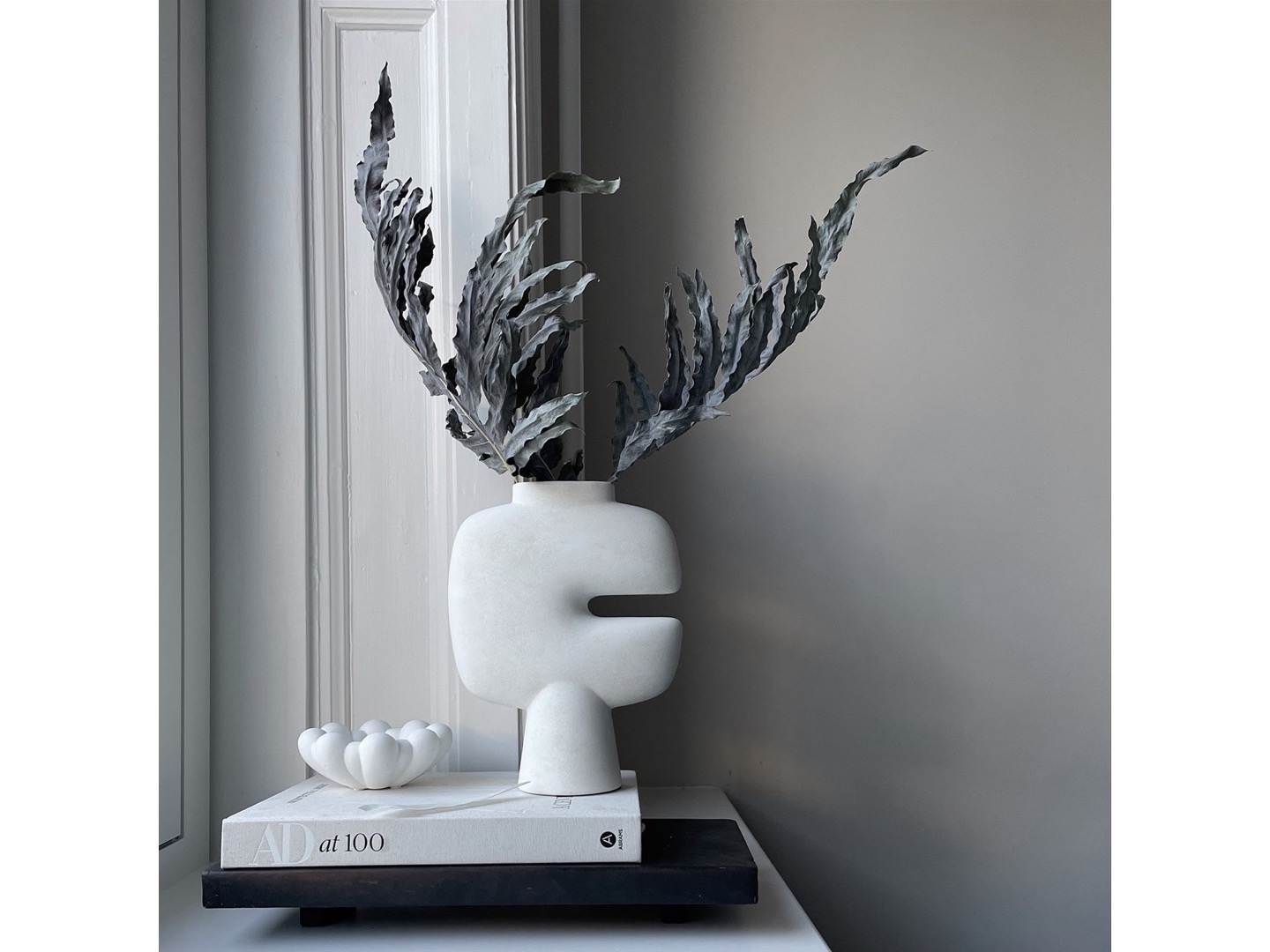 Kolekcja Tribal to seria wazonów zaprojektowanych jako rzeźbiarskie podejście do archetypowej maski plemiennej. Umieść pojedyncze łodygi kwiatowe w wąskim górnym otworze lub po prostu zostaw wazon jako samodzielny obiekt artystyczny. Ponieważ jest to produkt naturalny ręcznie glazurowany, kolory mogą się nieznacznie różnić i chociaż nie jest w 100% wodoodporny, w zestawie znajduje się torebka na świeże kwiaty.