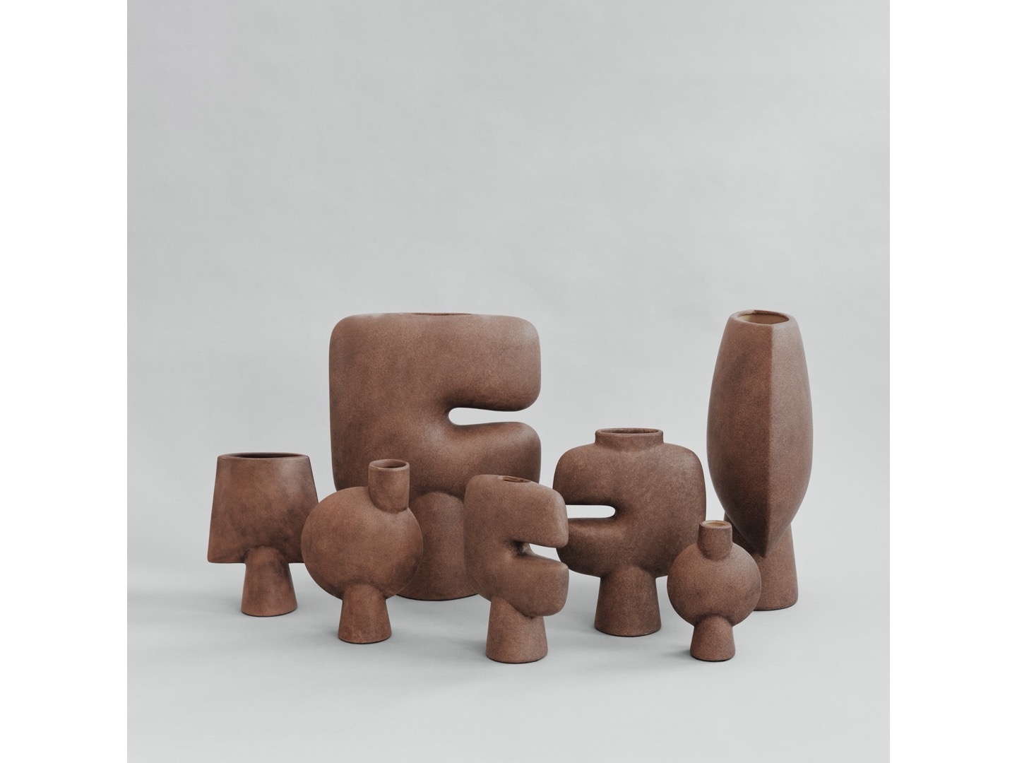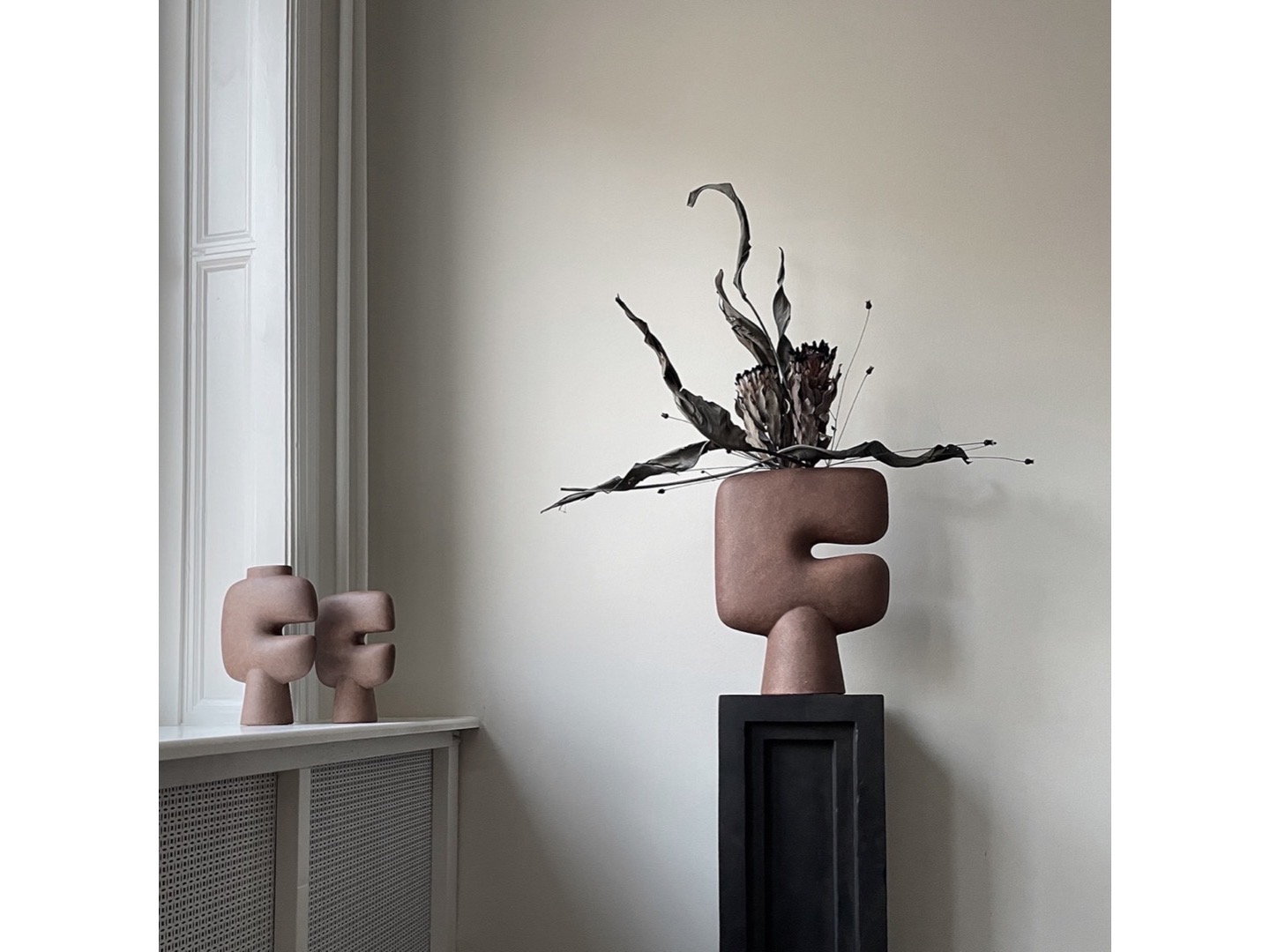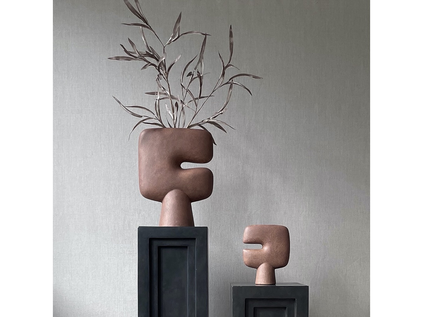 Kolekcja Tribal to seria wazonów zaprojektowanych jako rzeźbiarskie podejście do archetypowej maski plemiennej. Umieść pojedyncze łodygi kwiatowe w wąskim górnym otworze lub po prostu zostaw wazon jako samodzielny obiekt artystyczny. Ponieważ jest to produkt naturalny ręcznie glazurowany, kolory mogą się nieznacznie różnić i chociaż nie jest w 100% wodoodporny, w zestawie znajduje się torebka na świeże kwiaty.