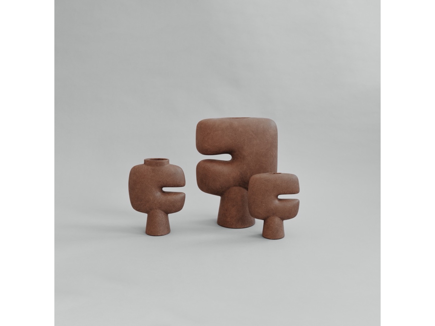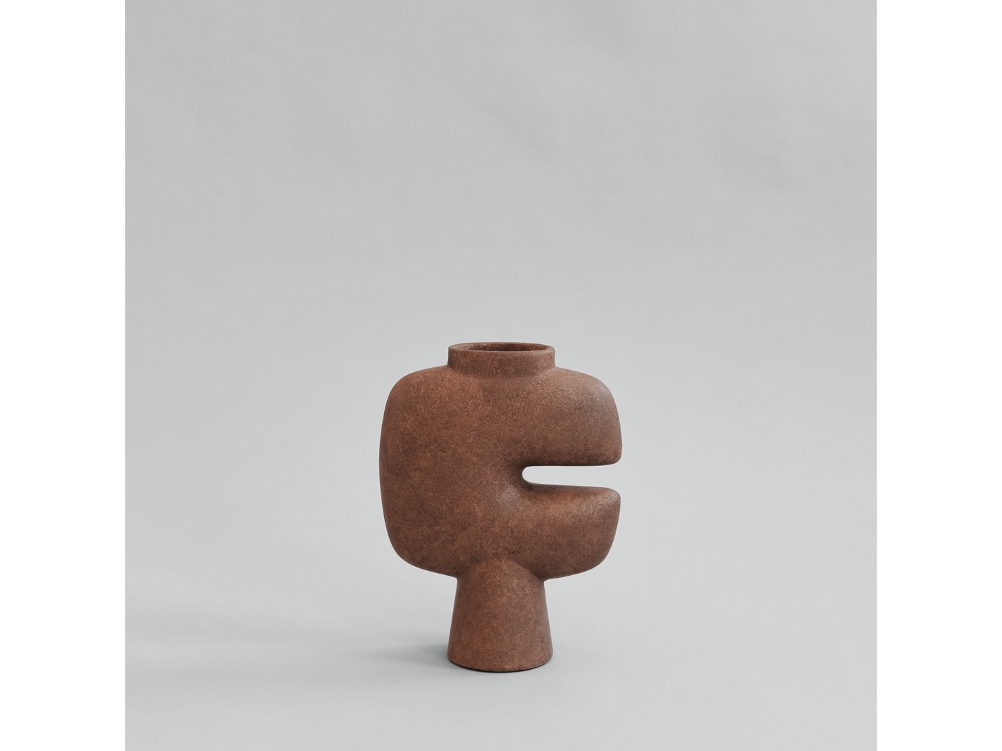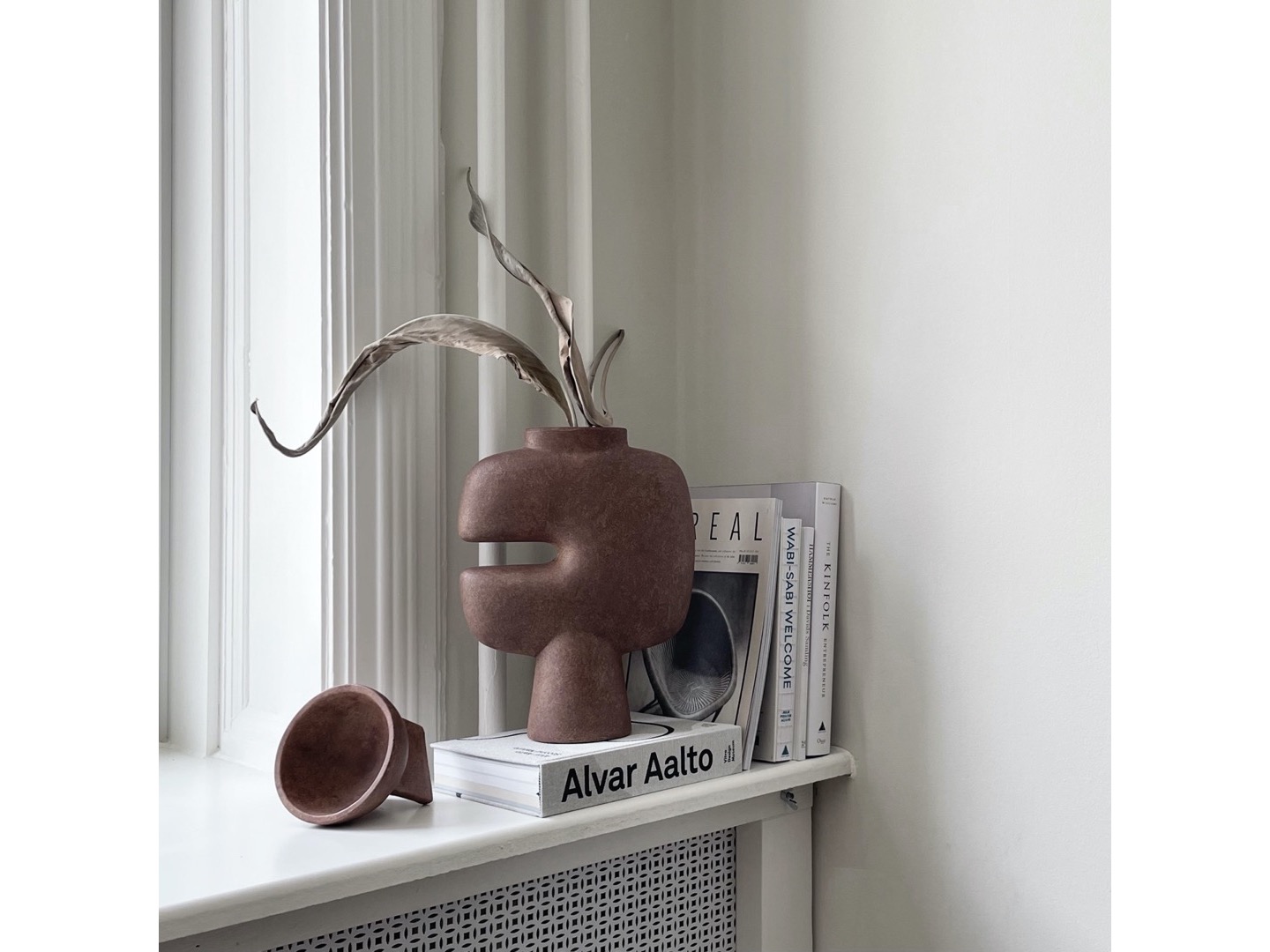 Kolekcja Tribal to seria wazonów zaprojektowanych jako rzeźbiarskie podejście do archetypowej maski plemiennej. Umieść pojedyncze łodygi kwiatowe w wąskim górnym otworze lub po prostu zostaw wazon jako samodzielny obiekt artystyczny. Ponieważ jest to produkt naturalny ręcznie glazurowany, kolory mogą się nieznacznie różnić i chociaż nie jest w 100% wodoodporny, w zestawie znajduje się torebka na świeże kwiaty.
