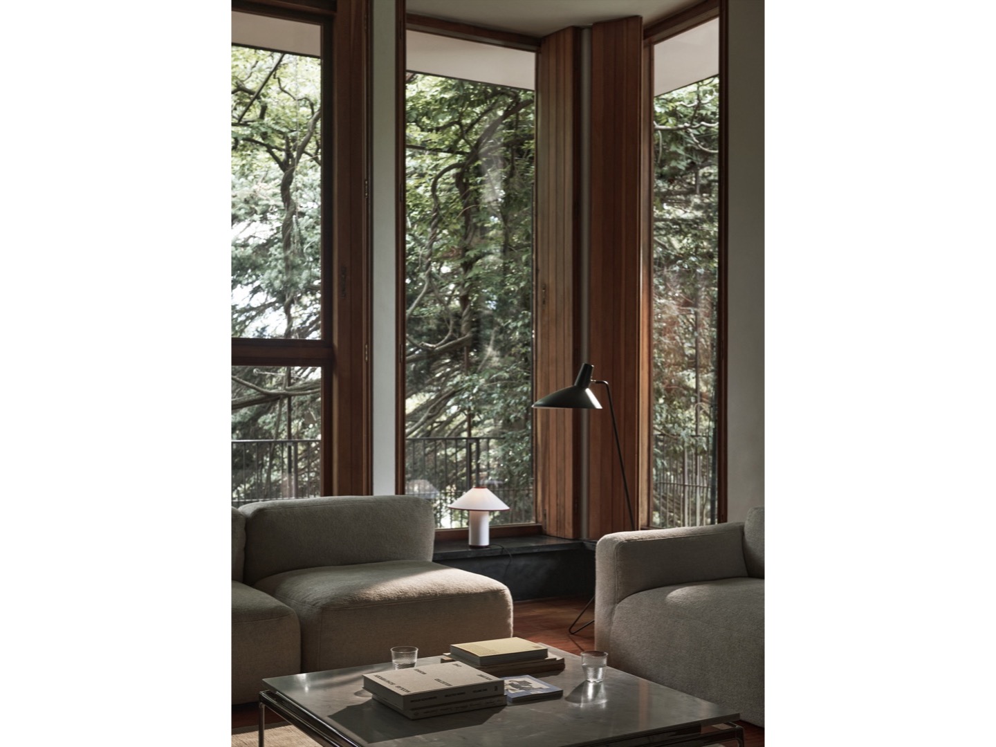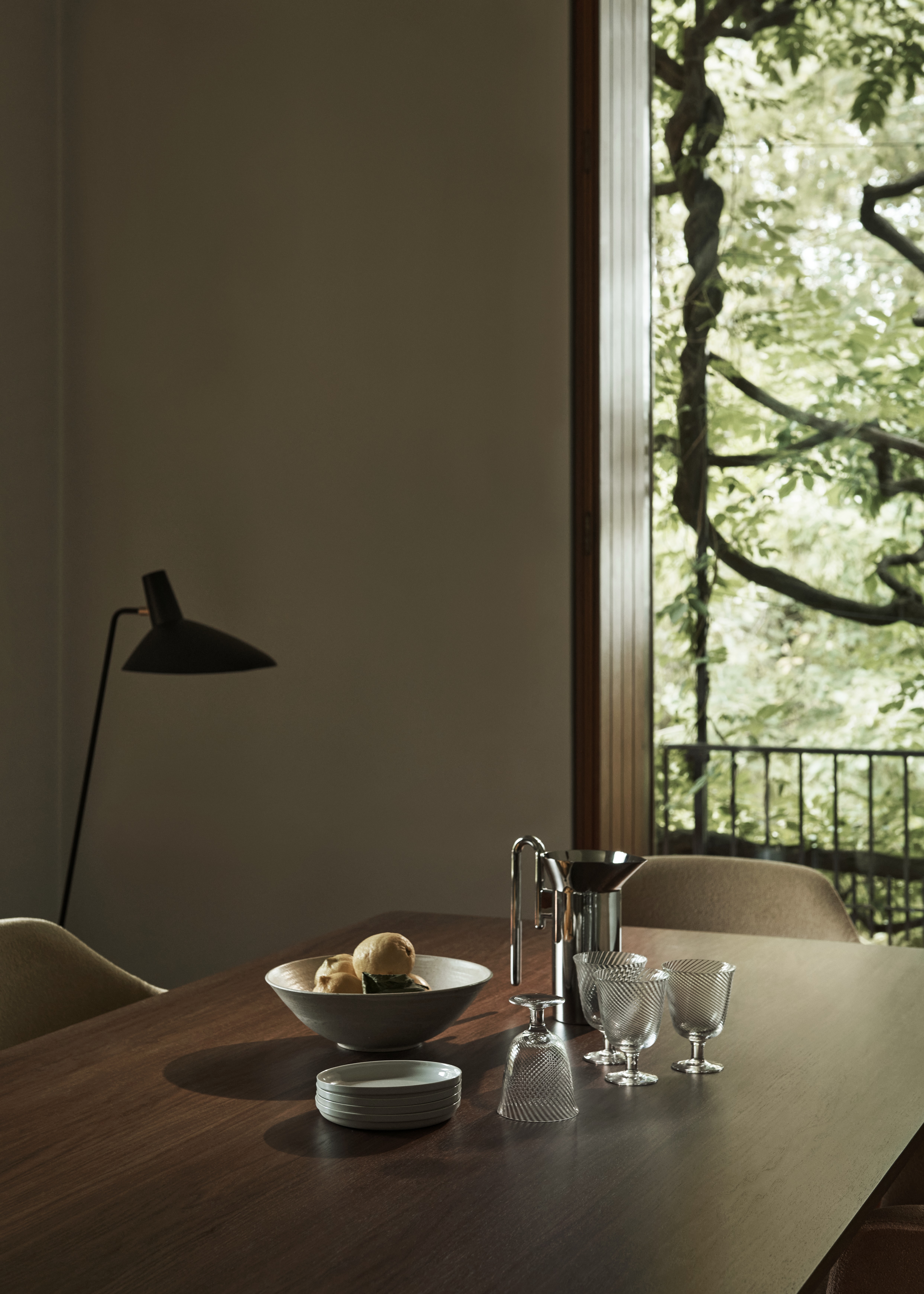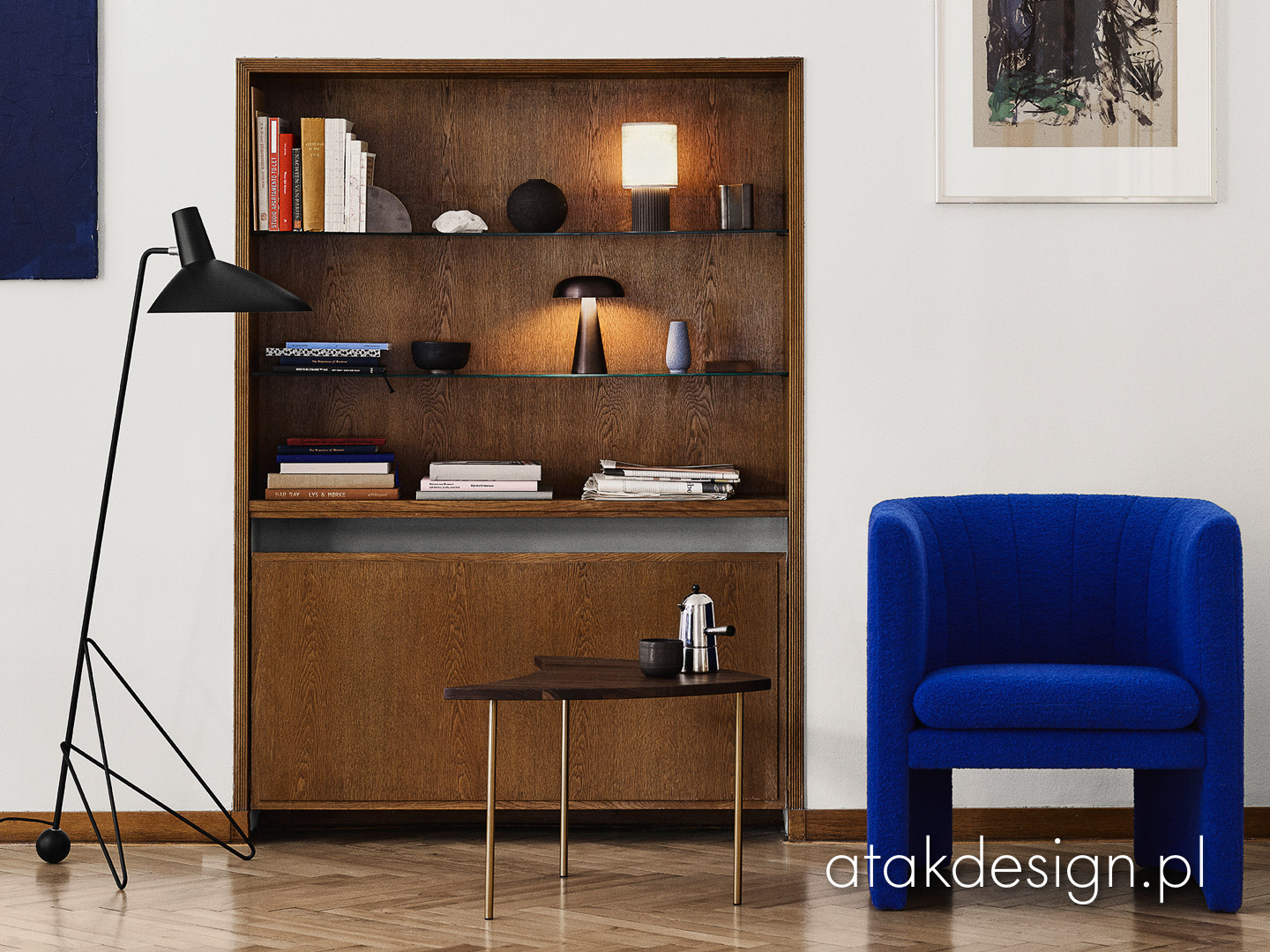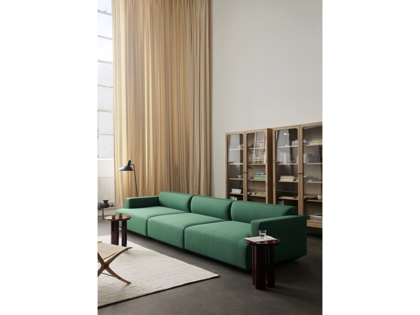 Lampa Tripod z 1953 roku odzwierciedla czysty minimalizm Old Masters Hvidt & Mølgaard. Lampa podłogowa zbudowana z lakierowanej stali z mosiężnymi detalami, zapewnia delikatną równowagę pomiędzy surową prostotą swojego projektu a miękkością nadawaną przez zakrzywione krawędzie podstawy. Teraz dostępna w trzech nowoczesnych kolorach: Black, Maroon i Moss.