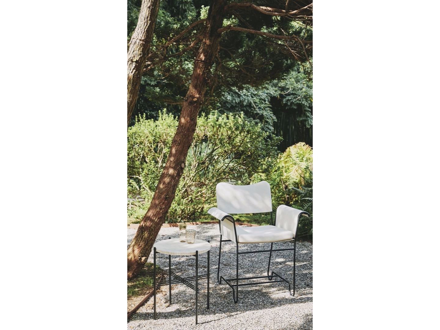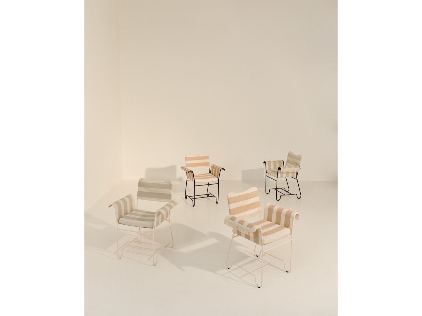 Łącząc prostotę materiału z dekadencką estetyką, kolekcja Tropique składa się z dwóch krzeseł i stołu jadalnego. Rama każdego elementu jest wykonana z prętów ze stali nierdzewnej, z charakterystyczną krzywizną u stóp – znakiem rozpoznawczym stylu Matégot i cechą, która łączy kolekcję w przejrzystą i spójną całość.
