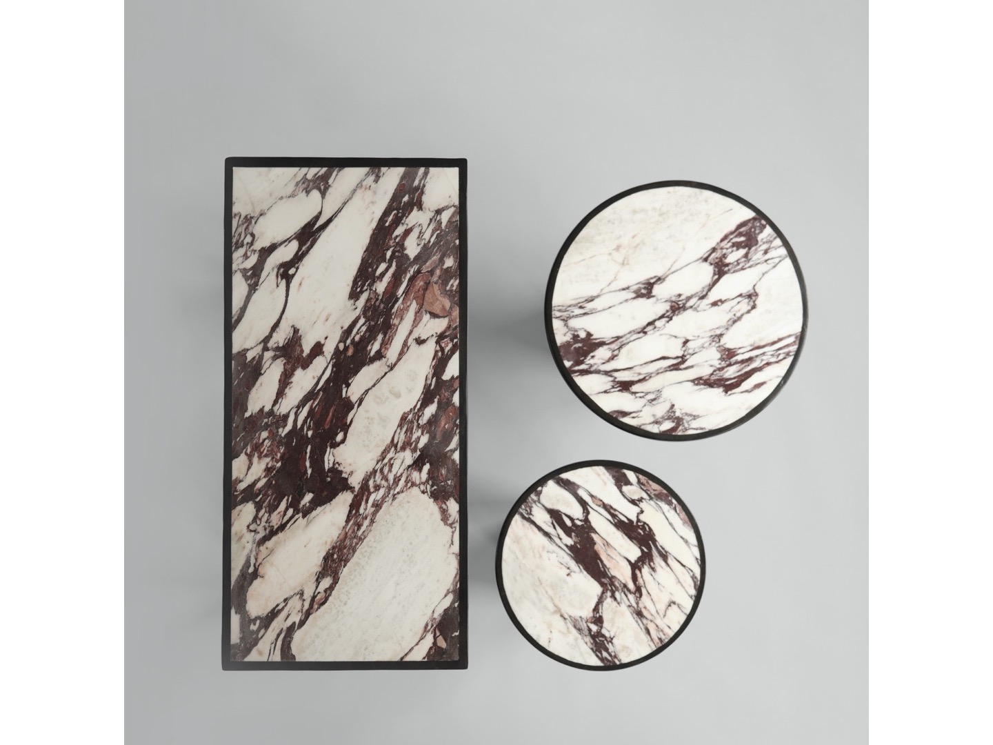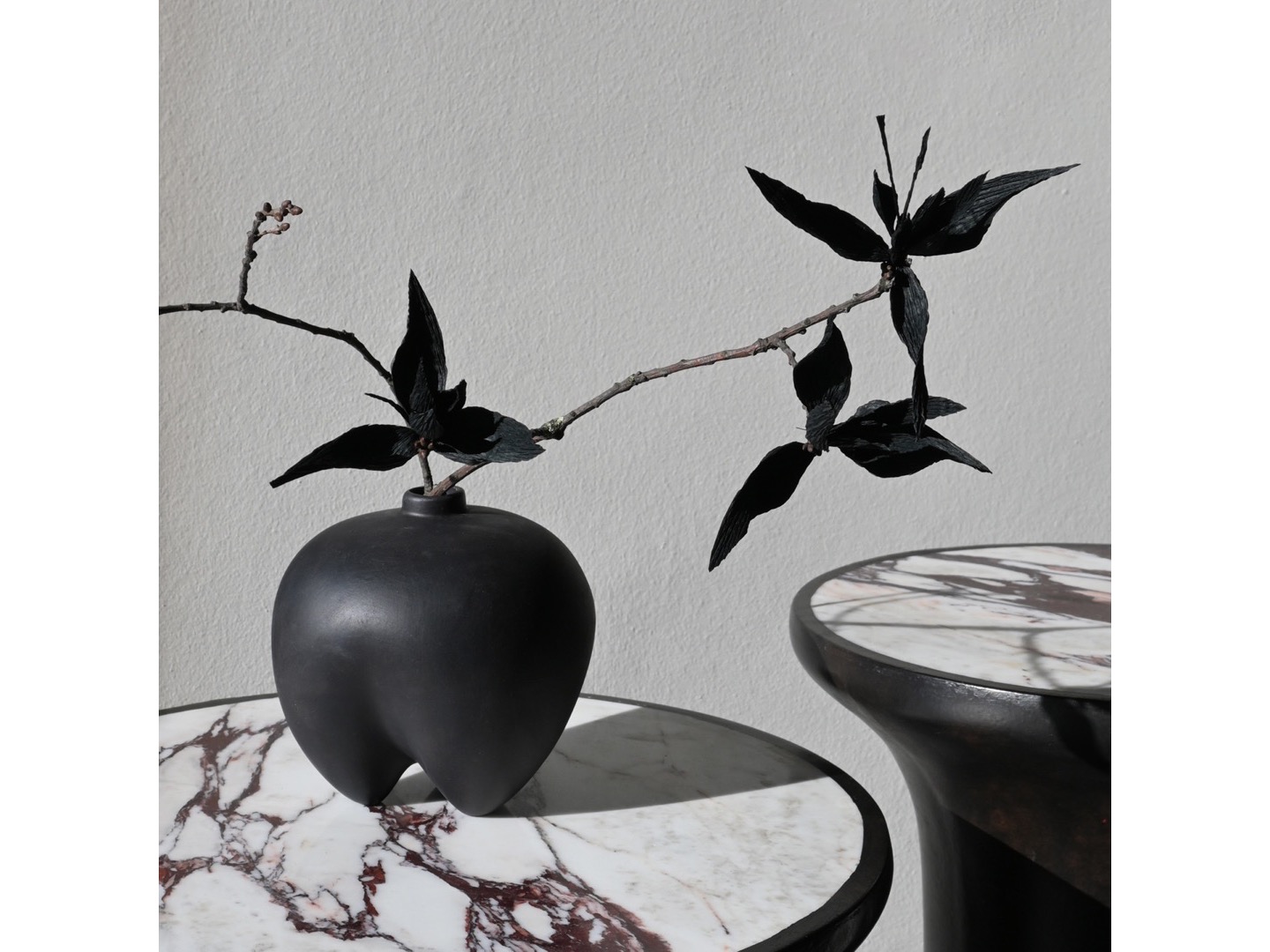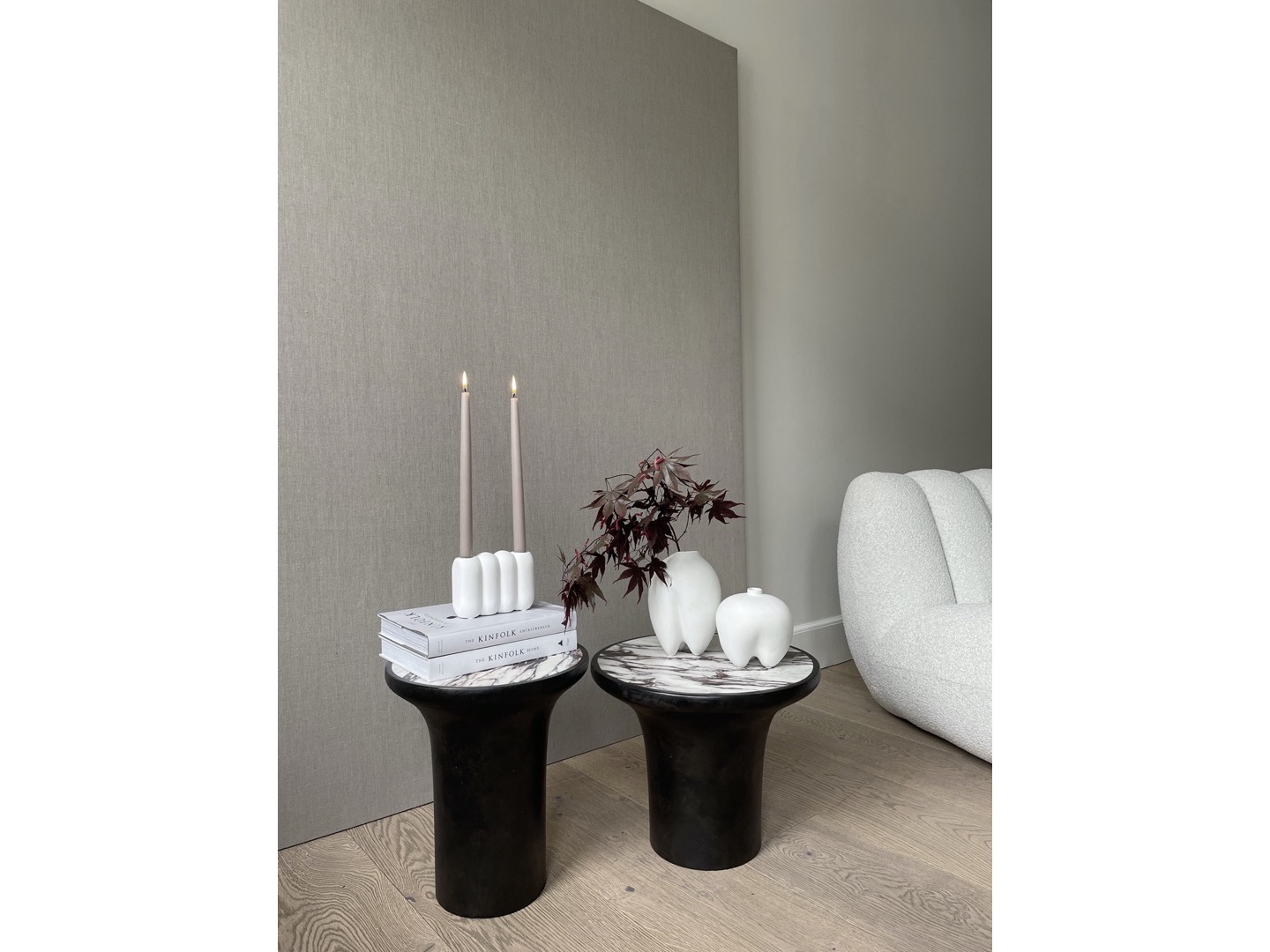Zainspirowane architekturą brutalizmu z lat 70. Trumpet Table zostały zaprojektowane w kształcie trąbki z miękką krzywizną i okrągłym blatem. Trumpet to czyste geometryczne kształty i uchwycenie piękna naturalnych materiałów. Wykonane z podstawy z betonu włóknistego, i marmurowego blatu, podkreślającego bogate i piękne wzory naturalnego kamienia. Polerowana powierzchnia miękko odbija światło, dodając ciepła stolikom.