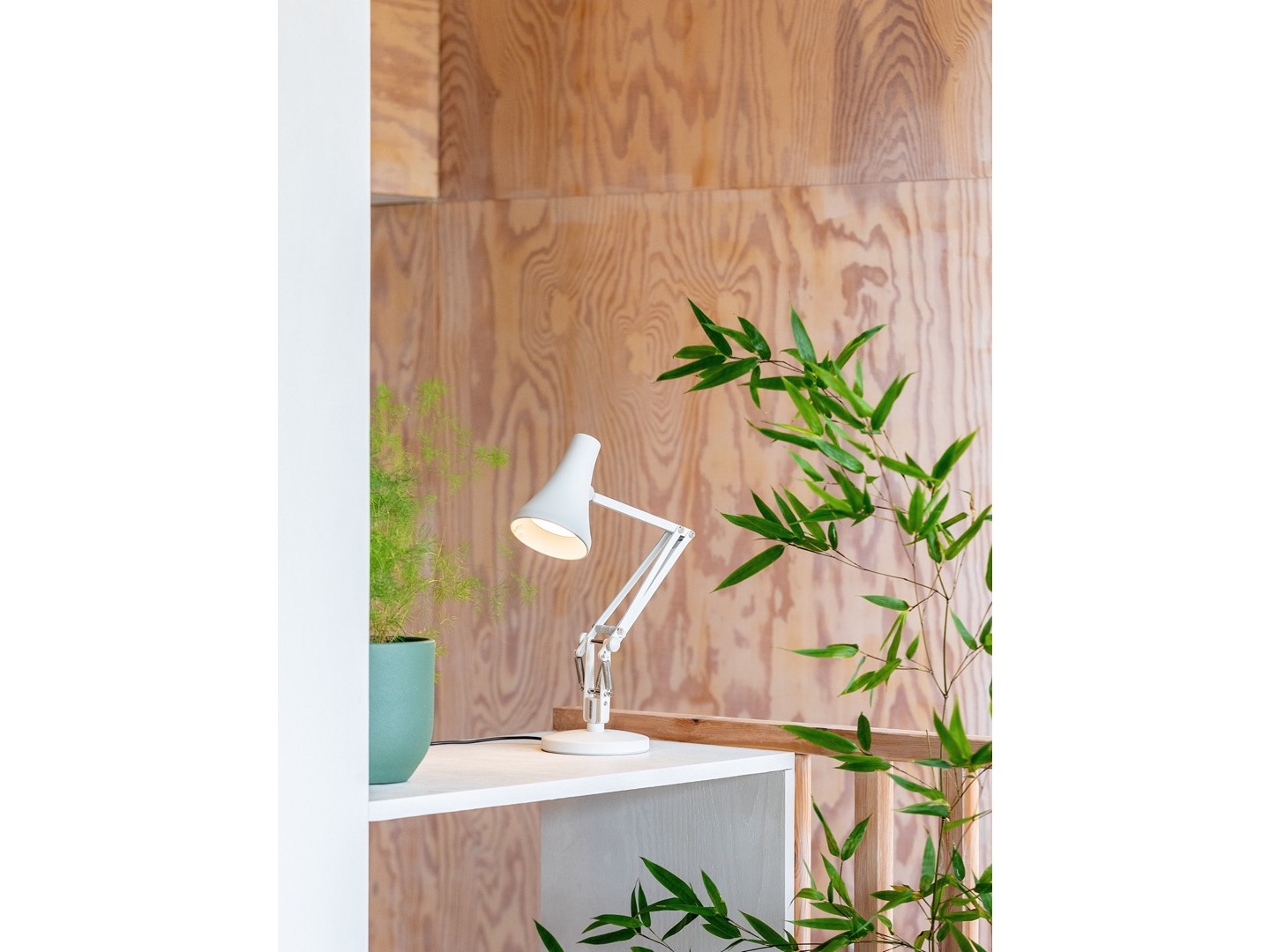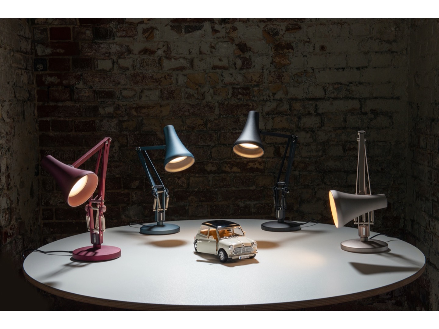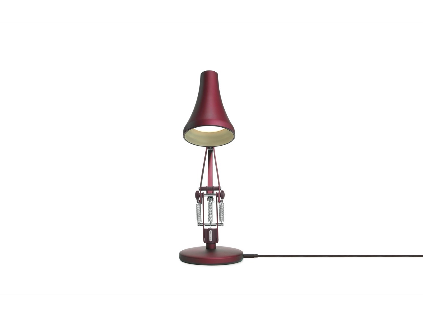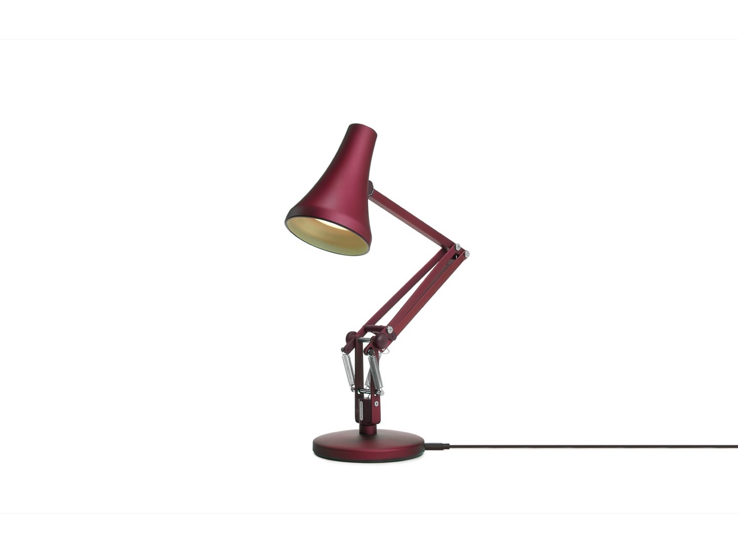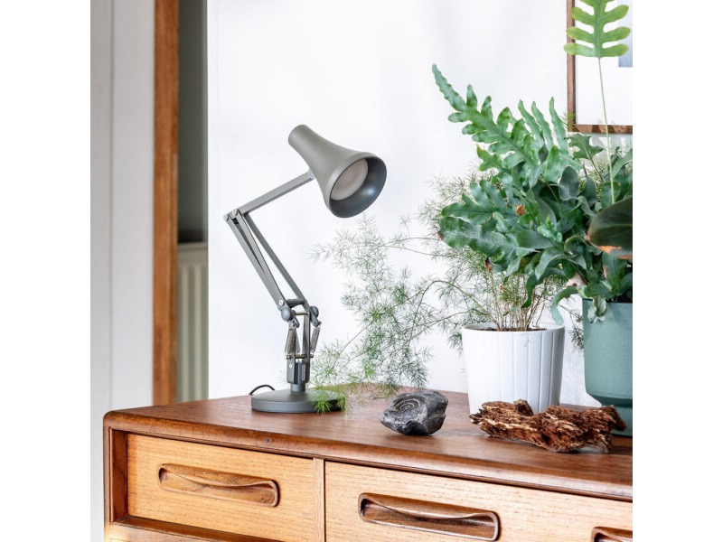 Type 90 Mini Mini Desk Lamp to lampa biurkowa Anglepoise wykorzystująca słynny, opatentowany mechanizm firmy. Choć nawiązuje do modernistycznej stylistyki innych lamp firmy jest na wskroś nowoczesna. Ten model lampy jest wyposażony we wbudowany akumulator i źródło światła LED, co pozwala używać go w dowolnym miejscu bez konieczności doprowadzania prądu. Po rozładowaniu akumulatora wystarczy naładować go zwykłą ładowarką na USB. Niezmienna pozostaje także wysoka jakość wykonania i trzysprężynowy mechanizm utrzymujący lampę w wybranej pozycji.