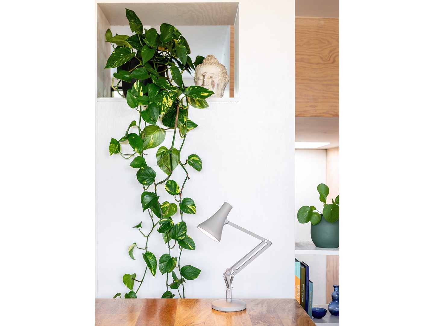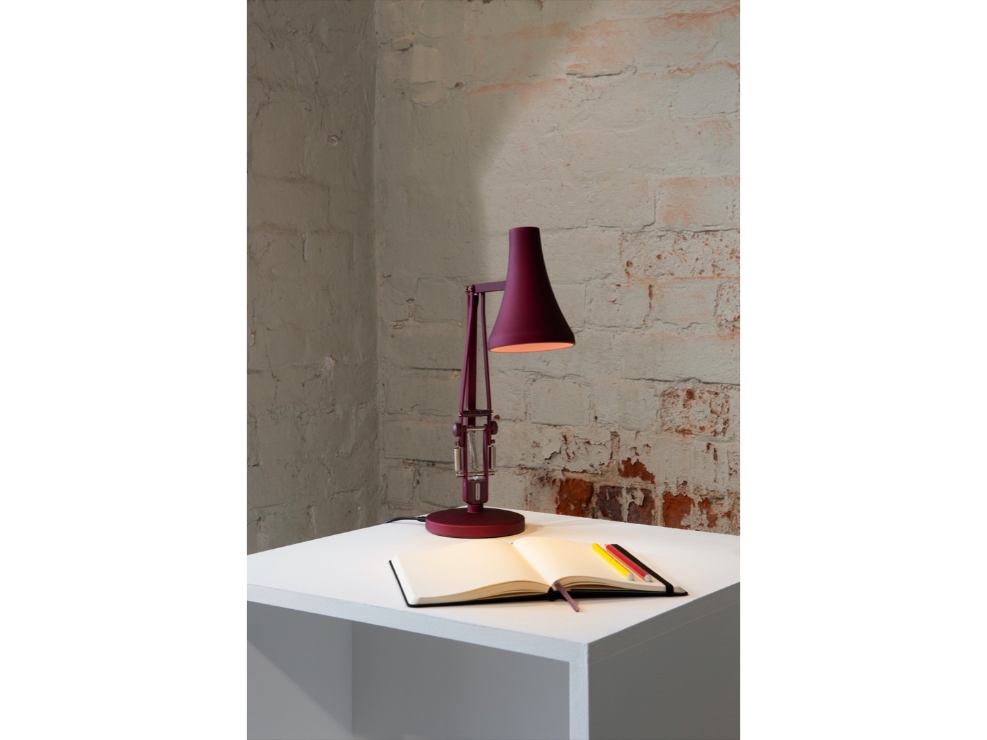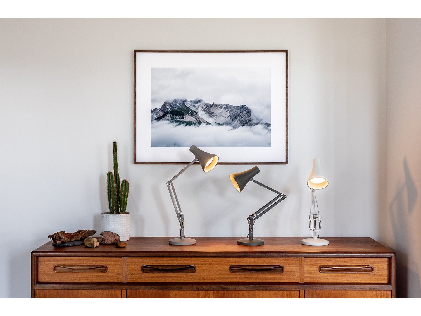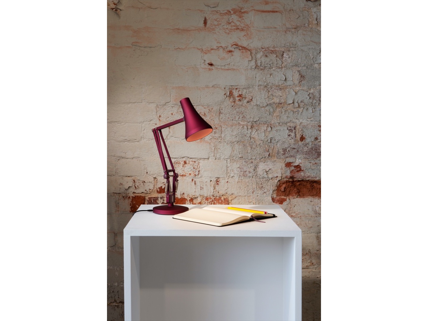 Type 90 Mini Mini Desk Lamp to lampa biurkowa Anglepoise wykorzystująca słynny, opatentowany mechanizm firmy. Choć nawiązuje do modernistycznej stylistyki innych lamp firmy jest na wskroś nowoczesna. Ten model lampy jest wyposażony we wbudowany akumulator i źródło światła LED, co pozwala używać go w dowolnym miejscu bez konieczności doprowadzania prądu. Po rozładowaniu akumulatora wystarczy naładować go zwykłą ładowarką na USB. Niezmienna pozostaje także wysoka jakość wykonania i trzysprężynowy mechanizm utrzymujący lampę w wybranej pozycji.