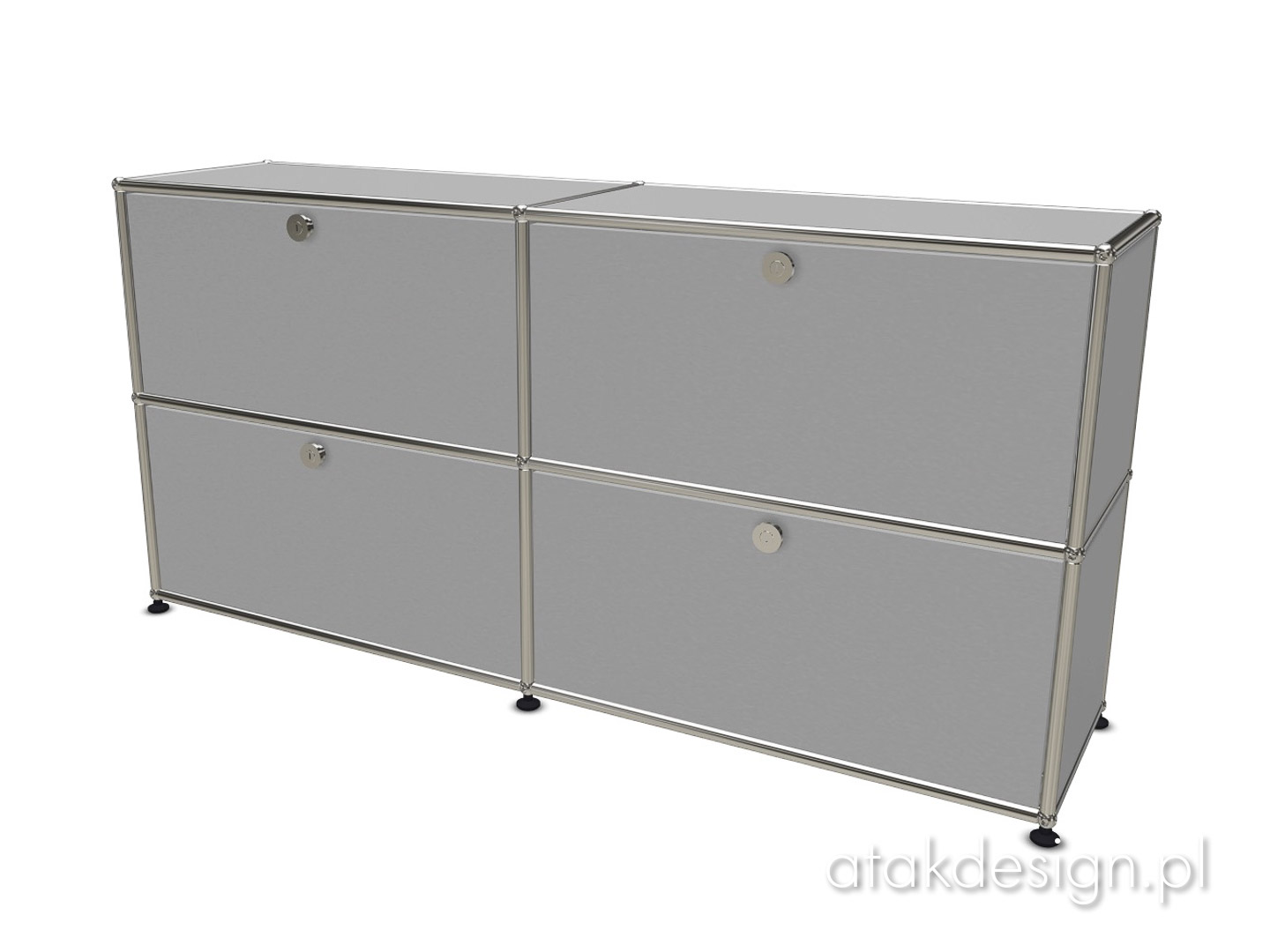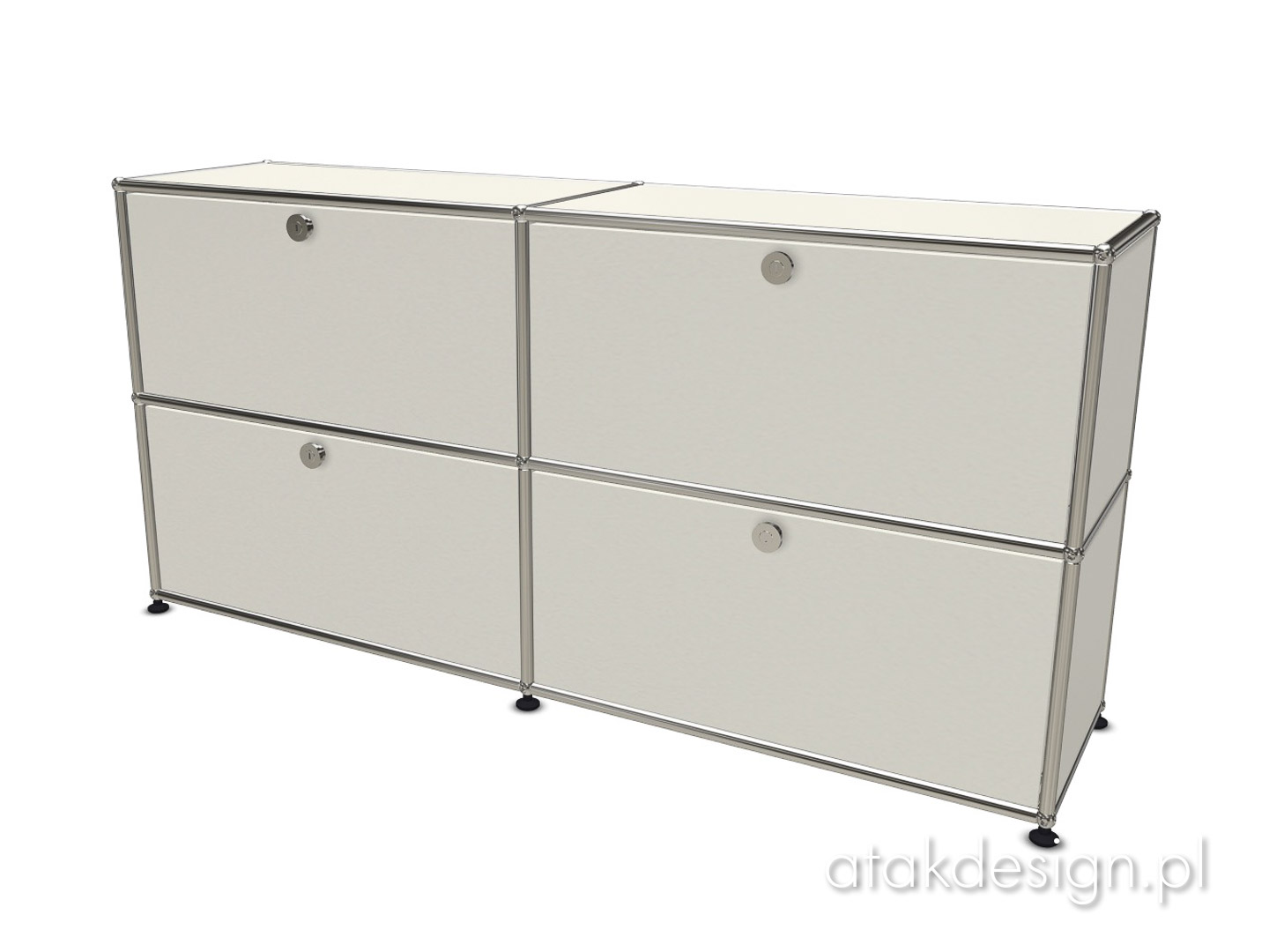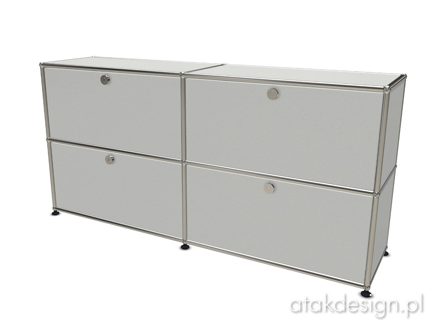 Funkcjonalna szafka zbudowana w systemie USM Haller. Elementem nośnym konstrukcji, a zarazem znakiem rozpoznawczym systemu USM, jest rama z chromowanych rurek połączonych kulkami, które również są chromowane. Szafka 2x2 to jedno z popularniejszych rozwiązań, często wybierane przez naszych klientów.