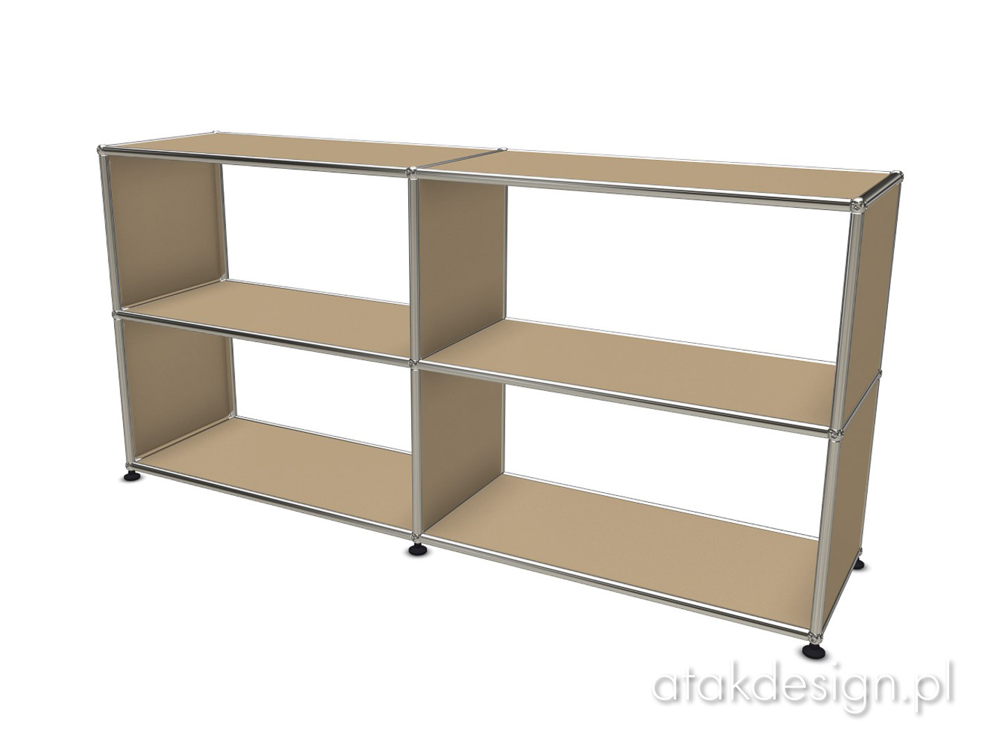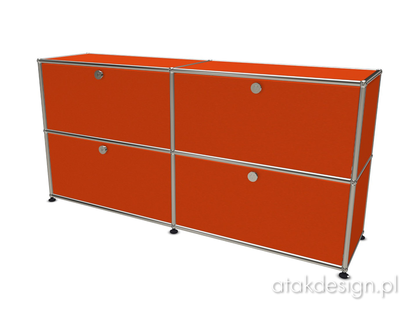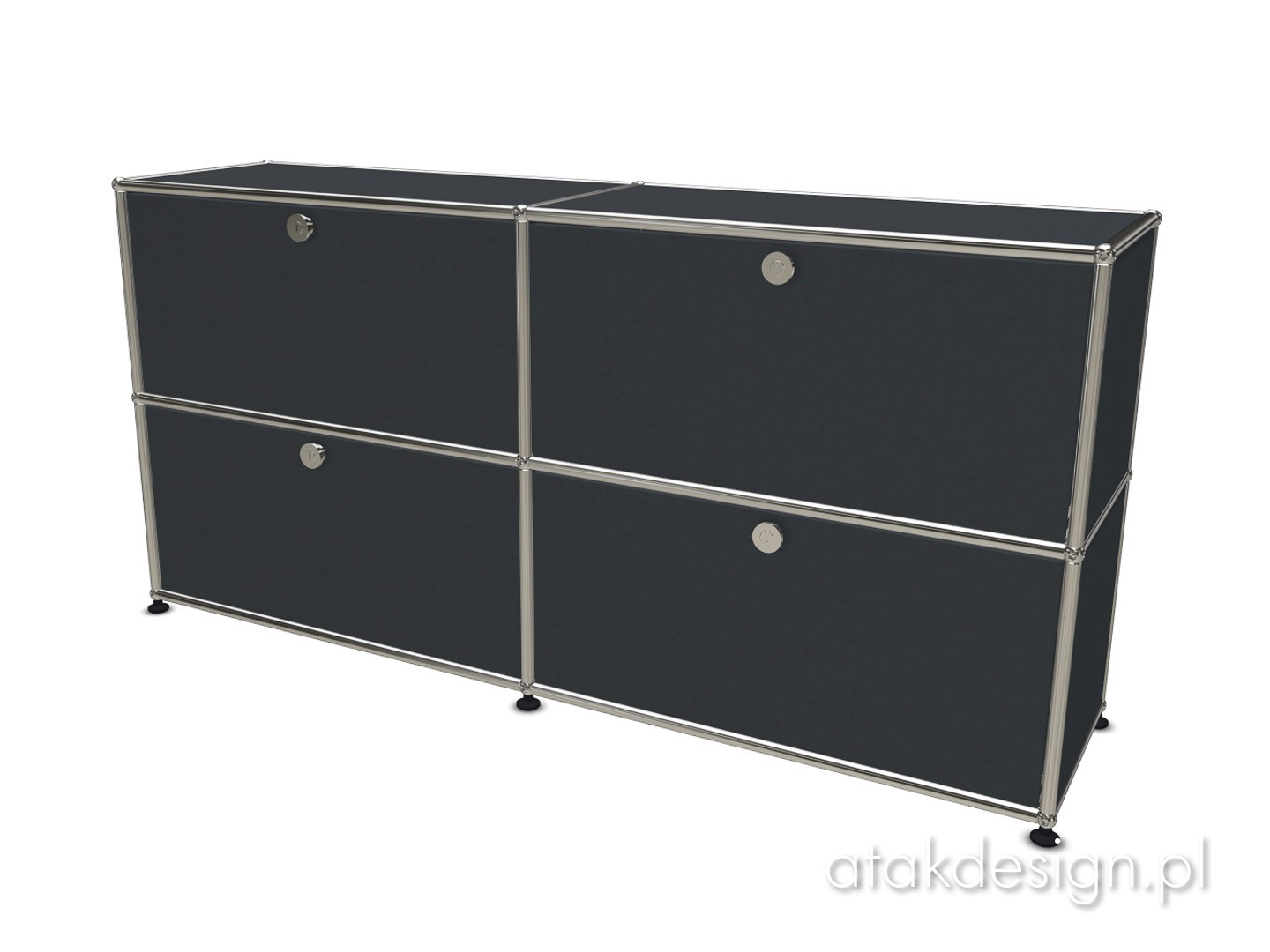 Funkcjonalna szafka zbudowana w systemie USM Haller. Elementem nośnym konstrukcji, a zarazem znakiem rozpoznawczym systemu USM, jest rama z chromowanych rurek połączonych kulkami, które również są chromowane. Szafka 2x2 to jedno z popularniejszych rozwiązań, często wybierane przez naszych klientów.