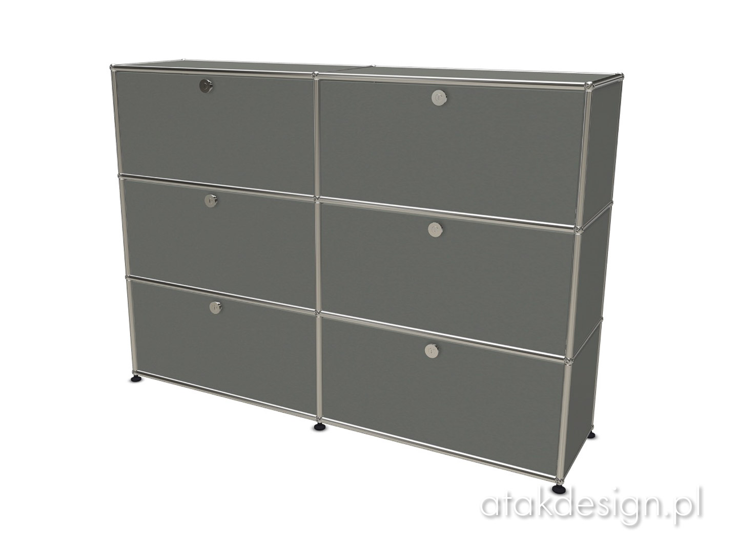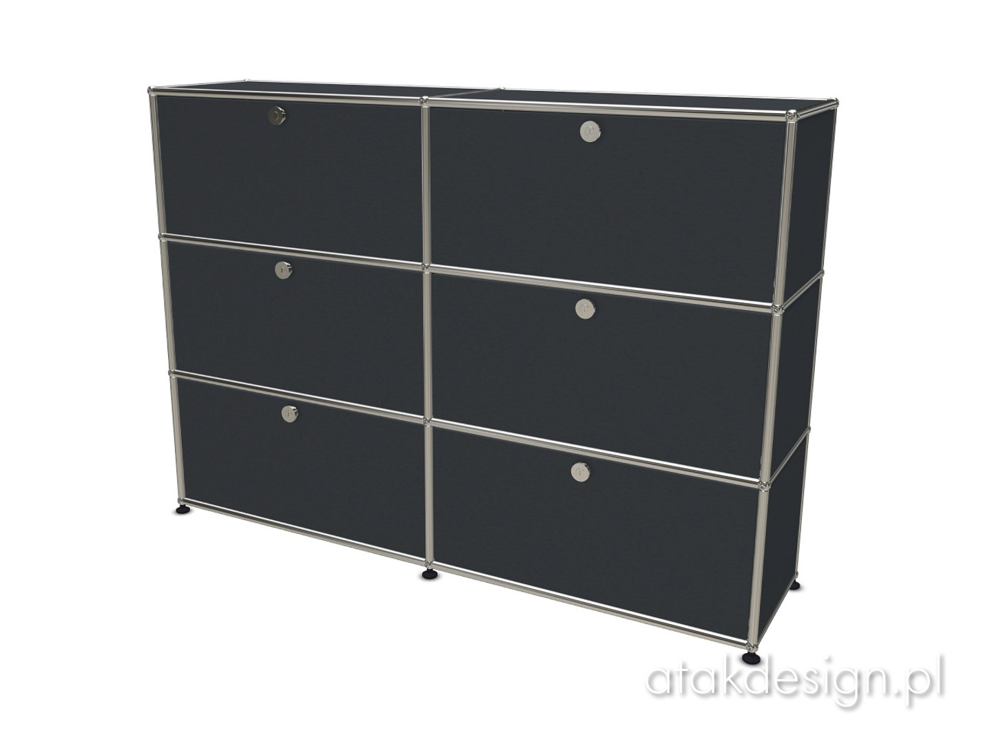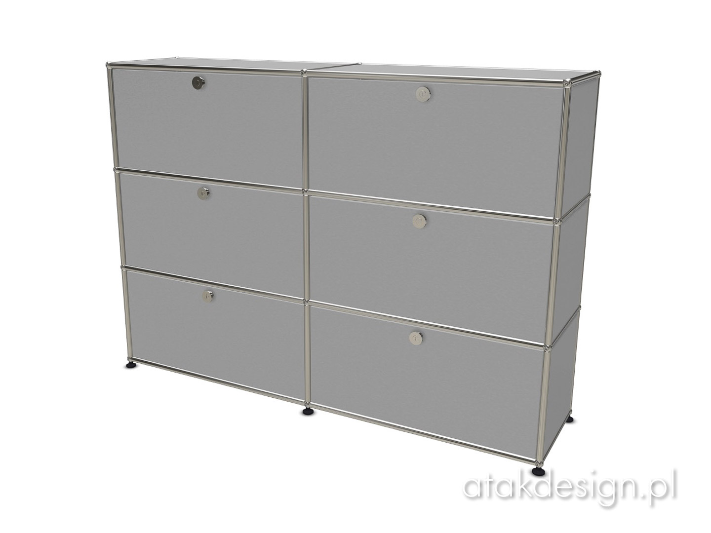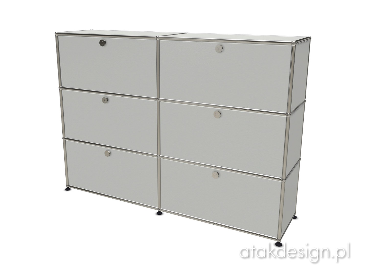 Funkcjonalna szafka zbudowana w systemie USM Haller. Elementem nośnym konstrukcji, a zarazem znakiem rozpoznawczym systemu USM, jest rama z chromowanych rurek połączonych kulkami, które również są chromowane. Szafka 3x2 to jedno z popularniejszych rozwiązań, często wybierane przez naszych klientów.
