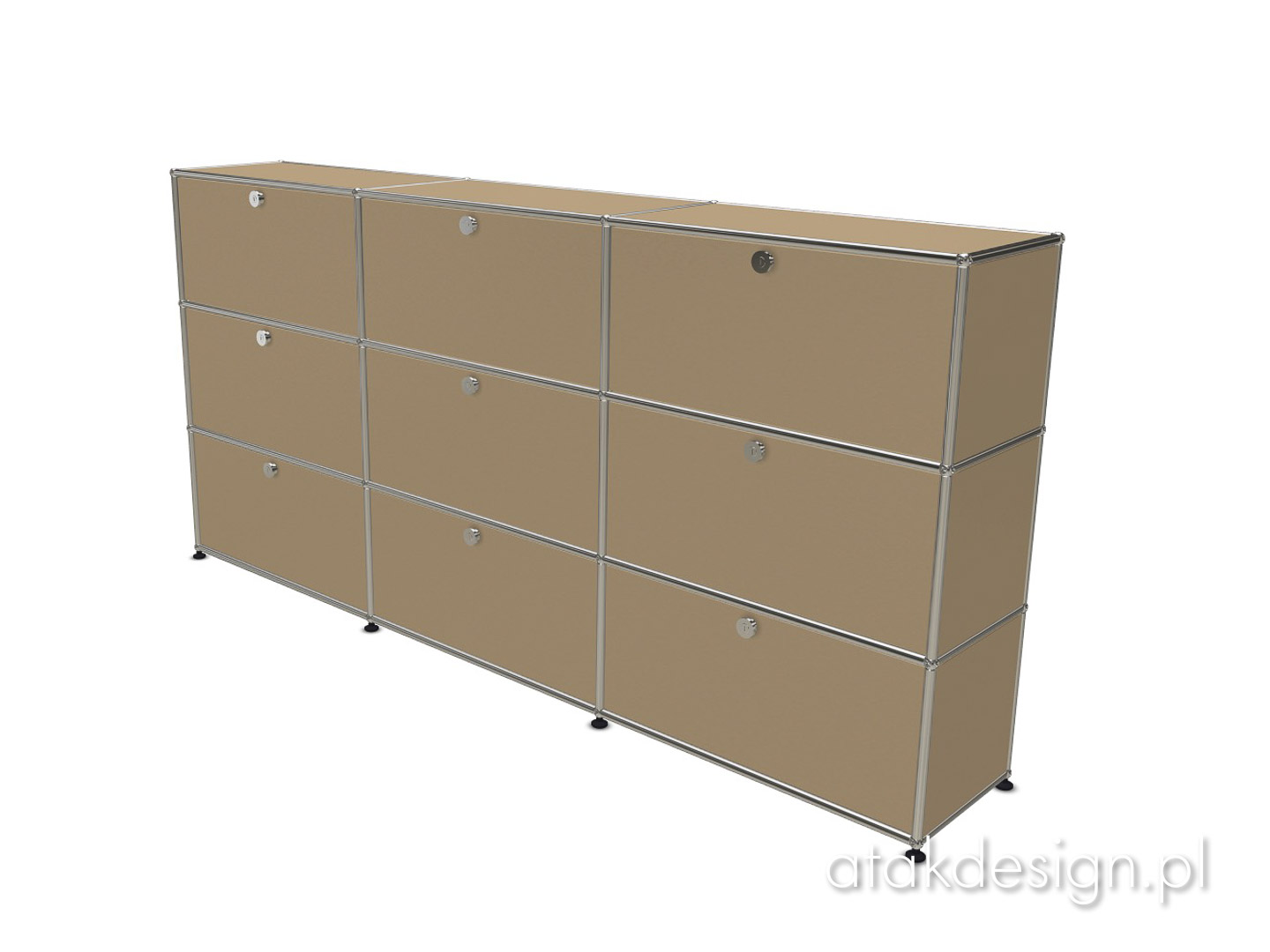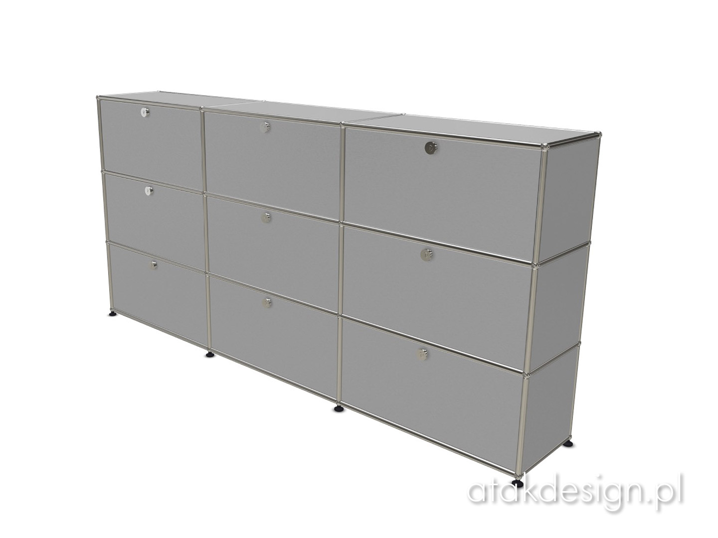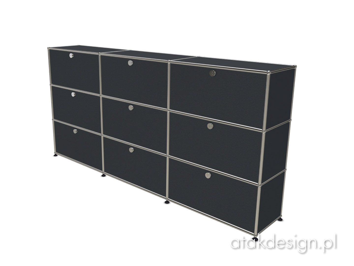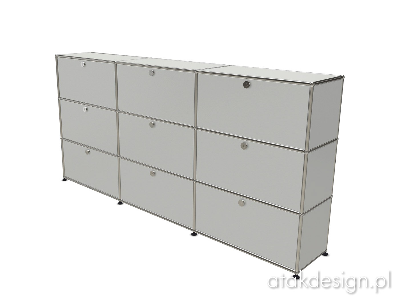 Funkcjonalna szafka zbudowana w systemie USM Haller. Elementem nośnym konstrukcji, a zarazem znakiem rozpoznawczym systemu USM, jest rama z chromowanych rurek połączonych kulkami, które również są chromowane. Szafka 3x3 to jedno z popularniejszych rozwiązań, często wybierane przez naszych klientów.