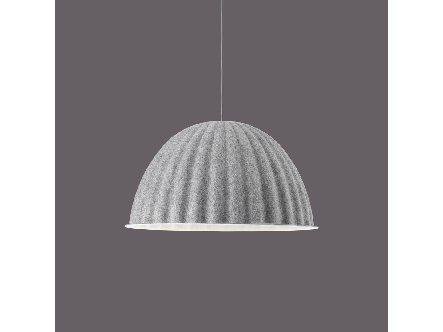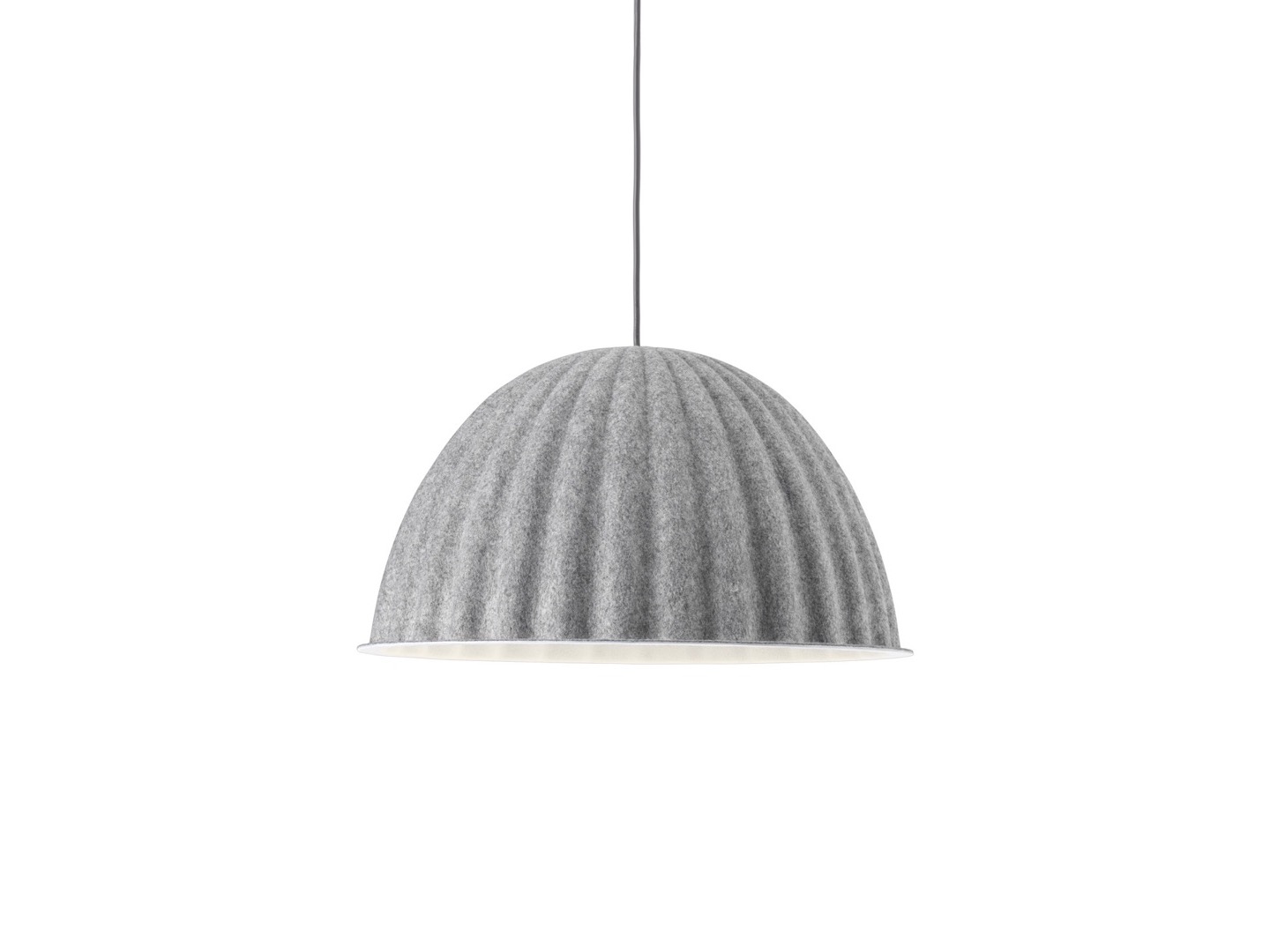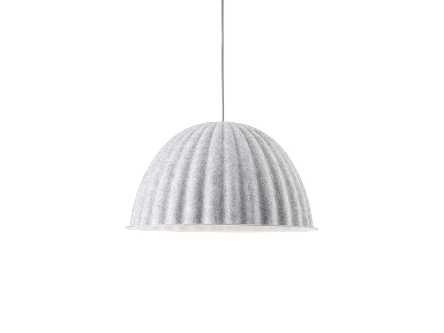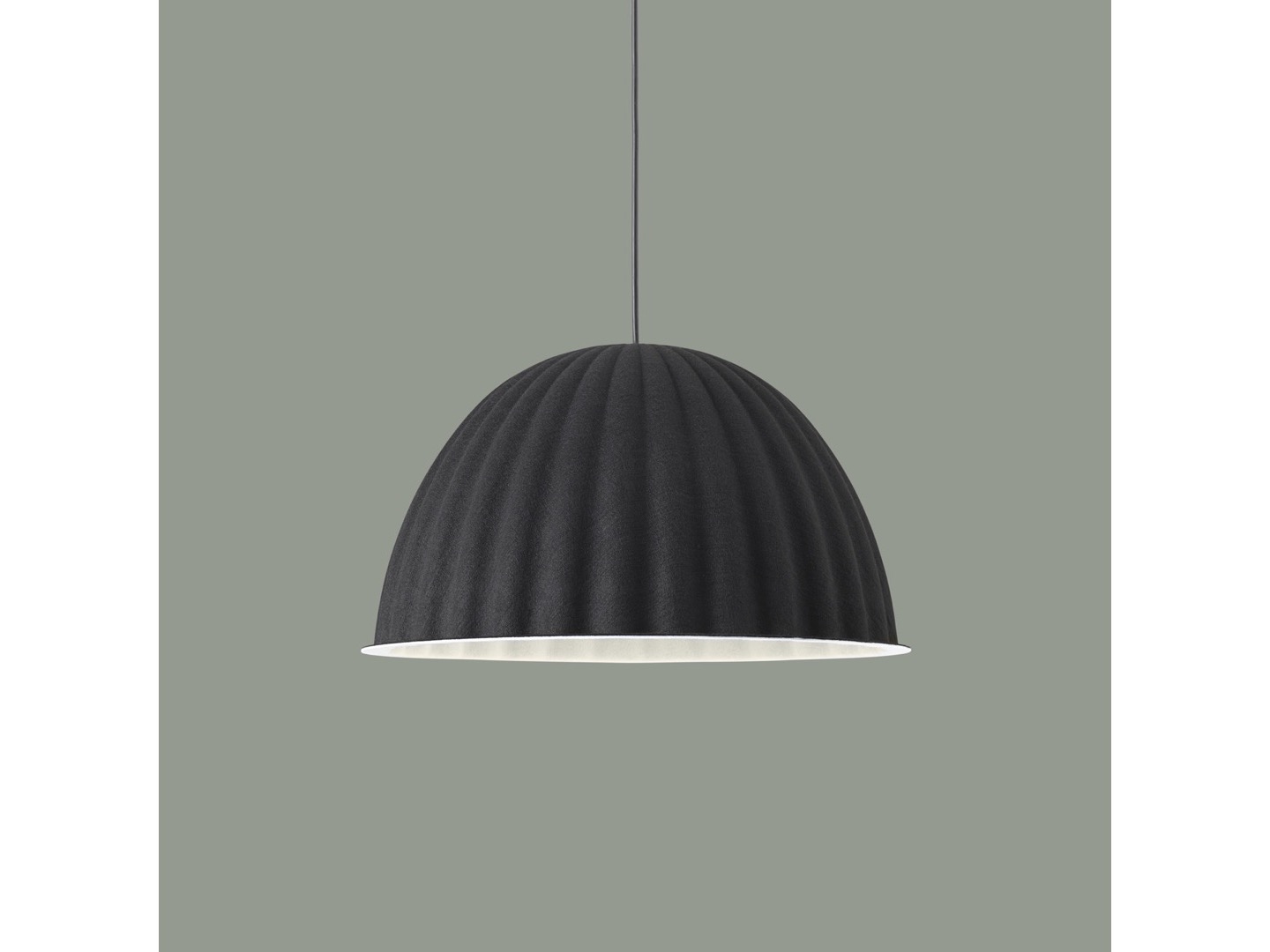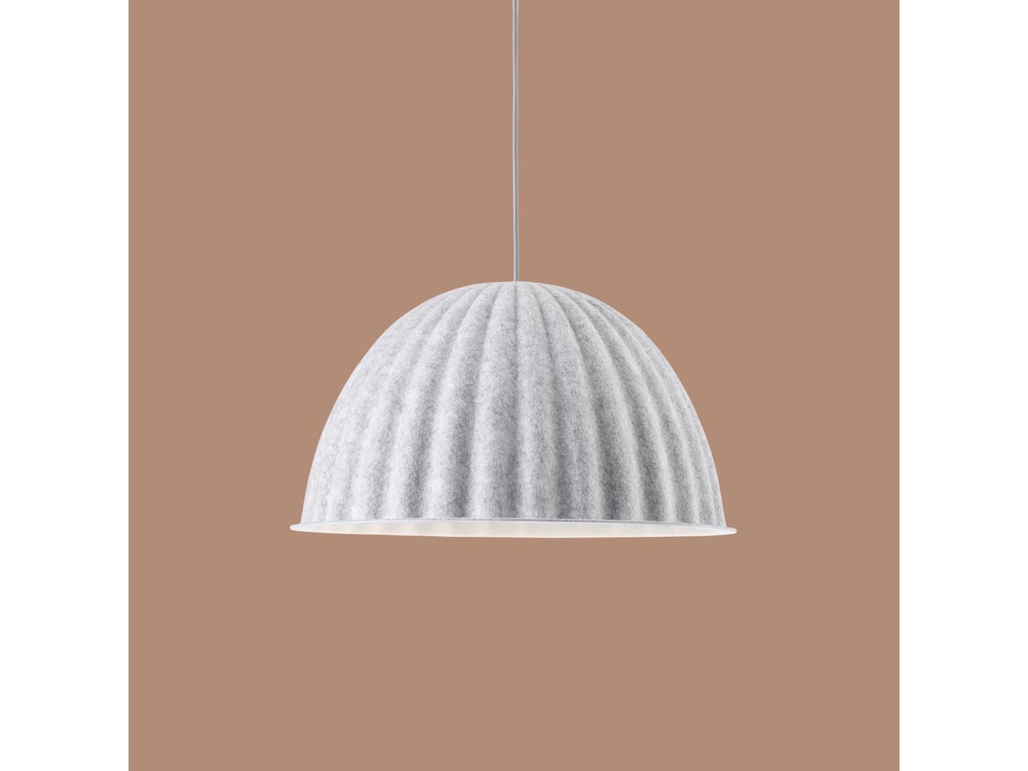 Under the bell to nietuzinkowe połączenie materiałów w jednym obiekcie codziennego użytku. Ciekawa forma tworzy niepowtarzalną atmosferę w każdym pomieszczeniu. Klosz wykonany jest z filcu poddanego obróbce cieplnej- udowodniono nawet, że budowa lampy i materiał z którego została wykonana poprawia akustykę w pomieszczeniu :)