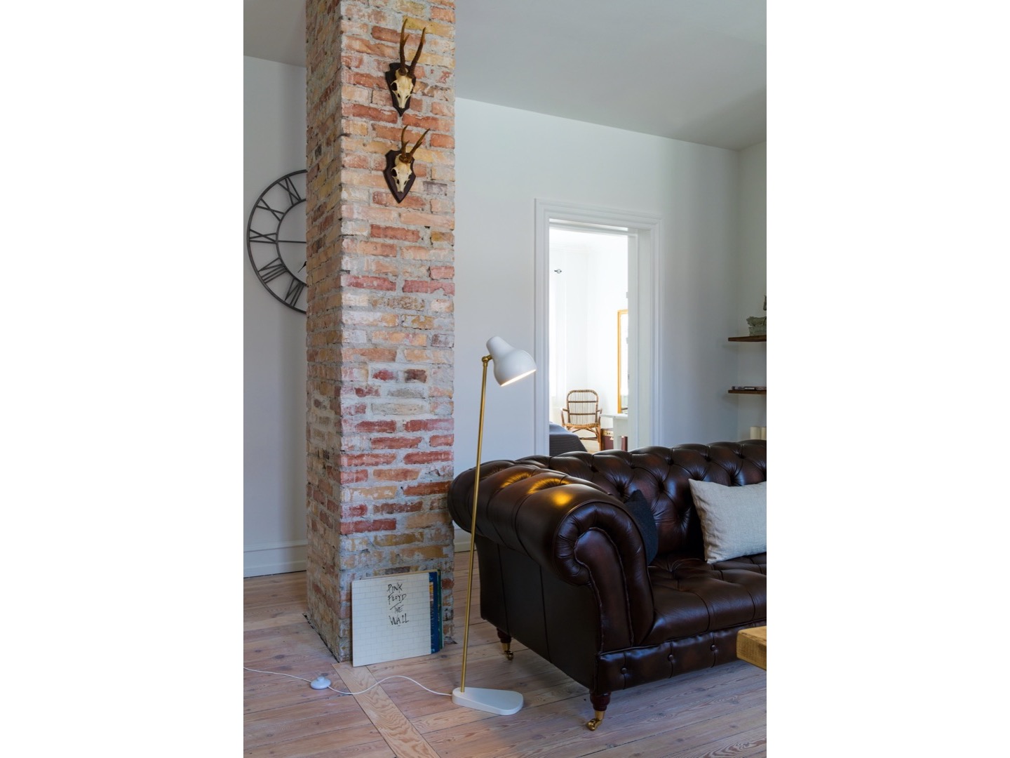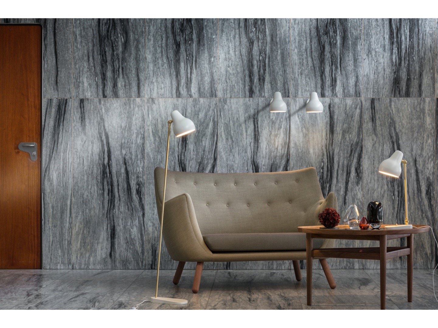 Lampa podłogowa VL38 oparta jest na oryginalnym projekcie lampy stołowej VL38. Lampa stołowa VL38 została pierwotnie zaprojektowana pod koniec lat 30. przez Vilhelma Lauritzena we współpracy z Louisem Poulsenem na potrzeby budowy budynku Radiohuset w Kopenhadze (obecnie Królewska Duńska Akademia Muzyczna). Projekty lampy Vilhelma Lauritzena, zaczęły pojawiać się w katalogach Louisa Poulsena po drugiej wojnie światowej w połowie lat czterdziestych. Aby sprostać współczesnym postępom w technologii oświetleniowej i efektywności energetycznej, oprawy zostały wyposażone w diody LED. Czarna edycja modelu VL38, wprowadzona jesienią 2017 r., ma mocniejszy zarys niż oryginalna biała wersja, zachowując przy tym uwielbiany styl retro i miękki, zakrzywiony wyraz oryginalnego projektu.
