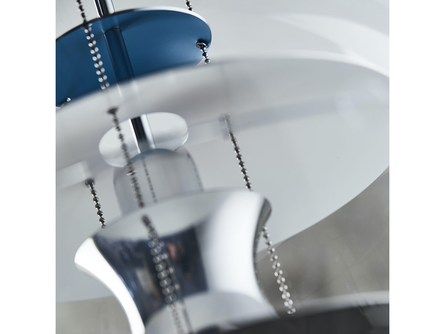 Klosz zewnętrzny wykonany został z :przezroczystego tworzywa ( w środku znajduje się 5 elementów z aluminium, każdy z elementów ma swój przypisany kolor: biały, niebieski i pomarańczowy).Kabel w czarnym oplocie o długości 4 metrów. Dostępne są dwie wielkości 40 i 50 cm średnicy.
