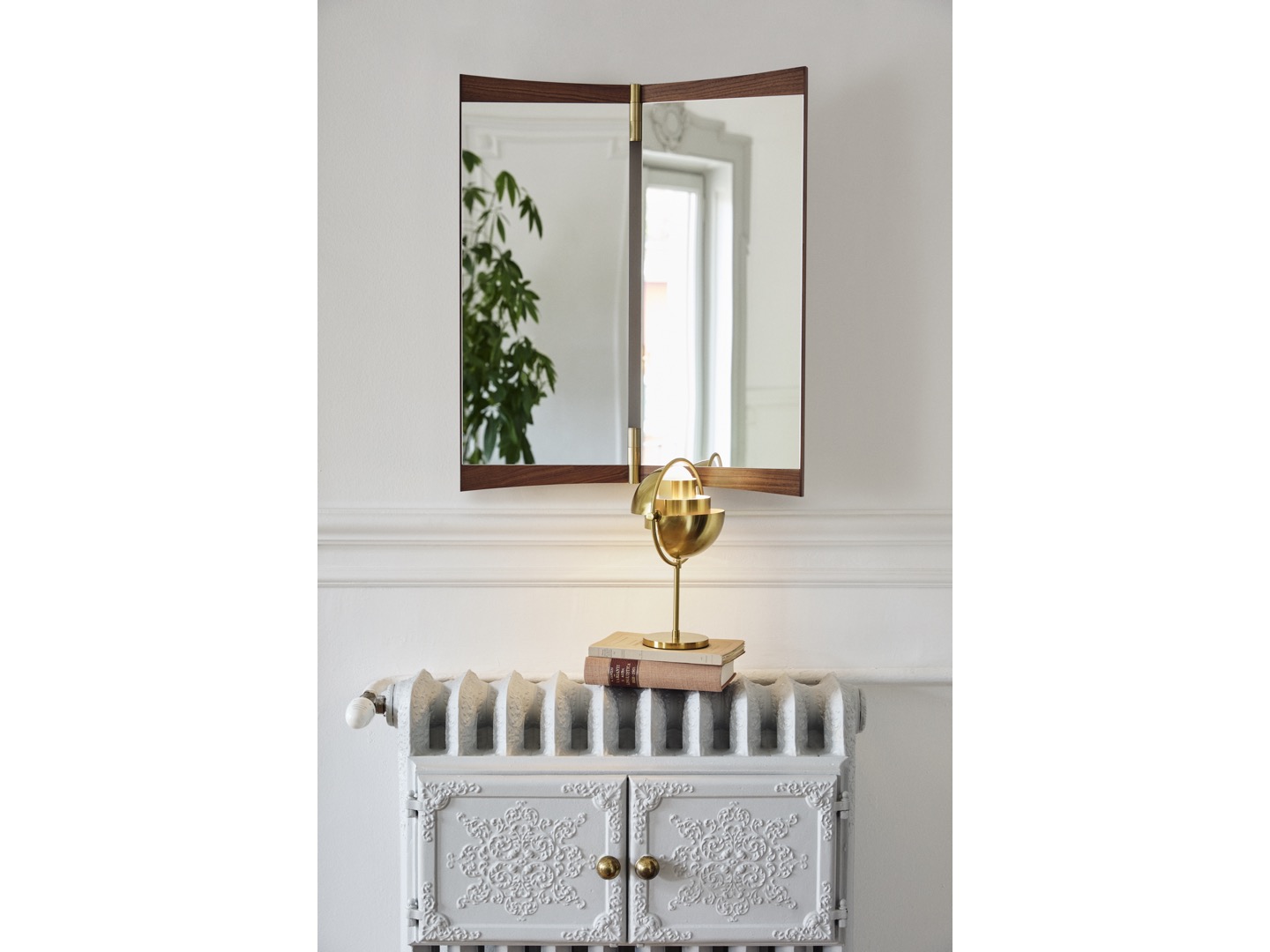 Kolekcja Vanity Mirror, stanowiąca współczesne echo XVIII-wiecznego lustra toaletkowego, od którego wzięła się jego nazwa, to drugi projekt luster ściennych GamFratesi dla GUBI. Kolekcja składa się z trzech wariantów – odpowiednio z jednym, dwoma i trzema panelami lustrzanymi. Cechami charakterystycznymi tego projektu są ciepły fornir orzechowy i mosiężne zawiasy. Umożliwiają one regulację kąta nachylenia lustra, wpływając na perspektywę, jaką ono oferuje i grę światła w pomieszczeniu. W przypadku jednopanelowego Vanity Mirror 1 zawiasy umożliwiają obrót o 15°, podczas gdy zawiasy 180° w Vanity Mirror 2 i Vanity Mirror 3 pozwalają panelom złożyć się płasko jeden na drugim, zakrywając lustro, gdy nie jest używane.