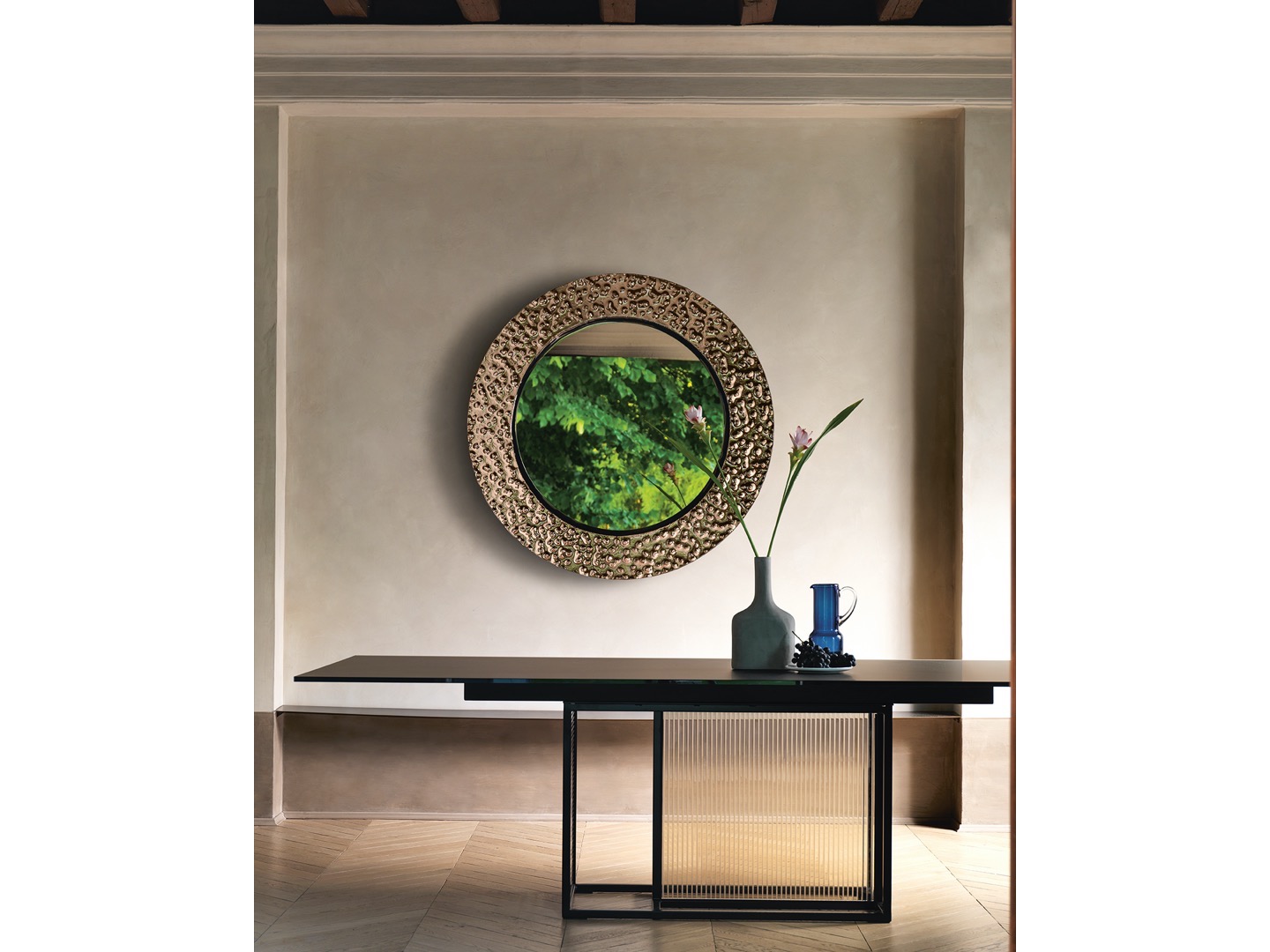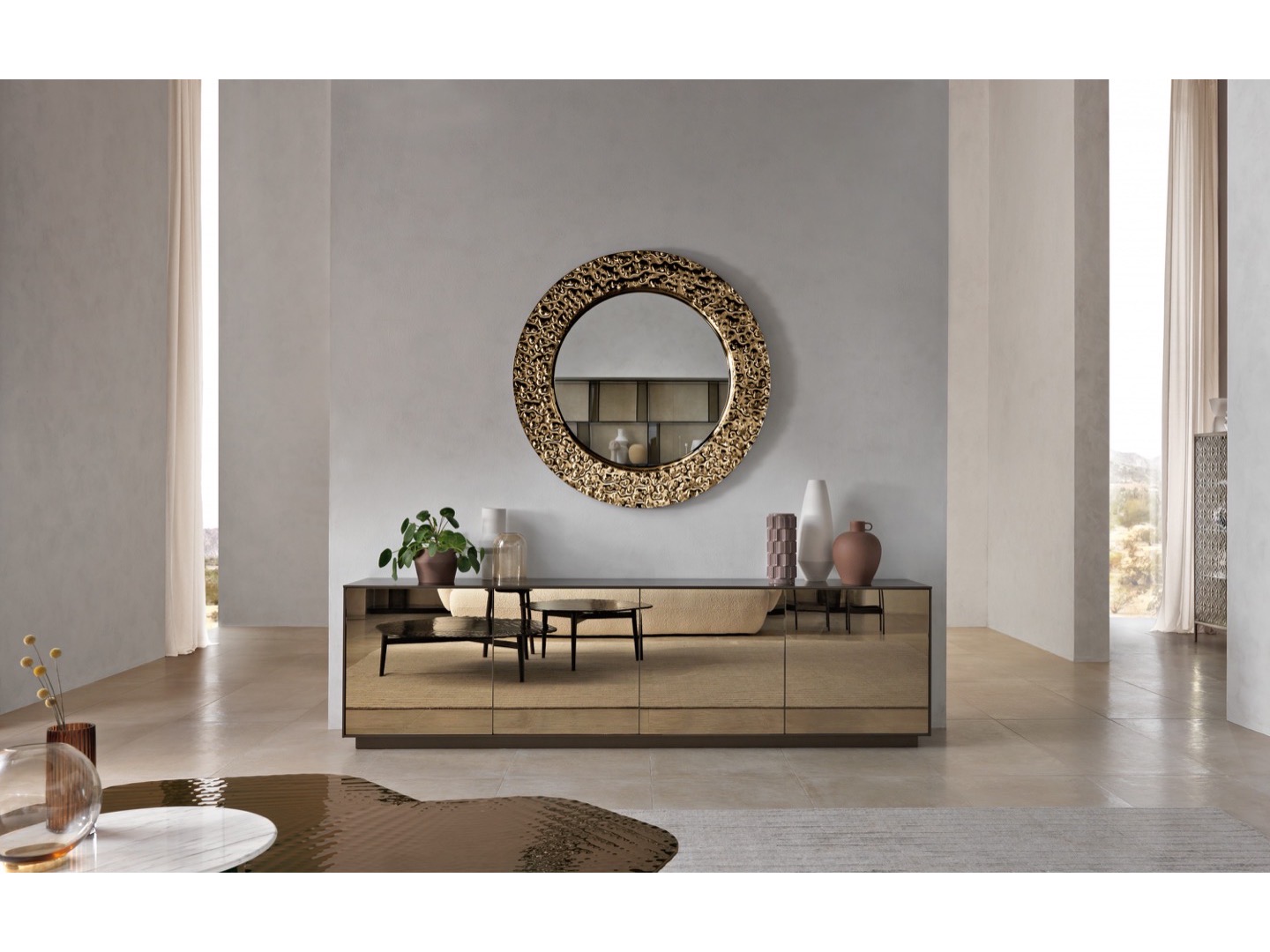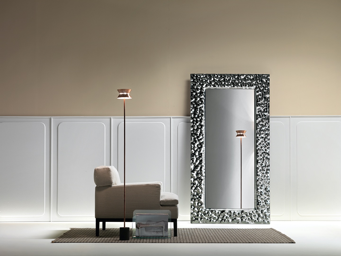 Kolekcja luster wykonanych techniką wytapiania szkła w bardzo wysokiej temperaturze. Lustro o grubości 4 mm. Ozdobna rama z tyłu jest pokryta warstwą metalu.