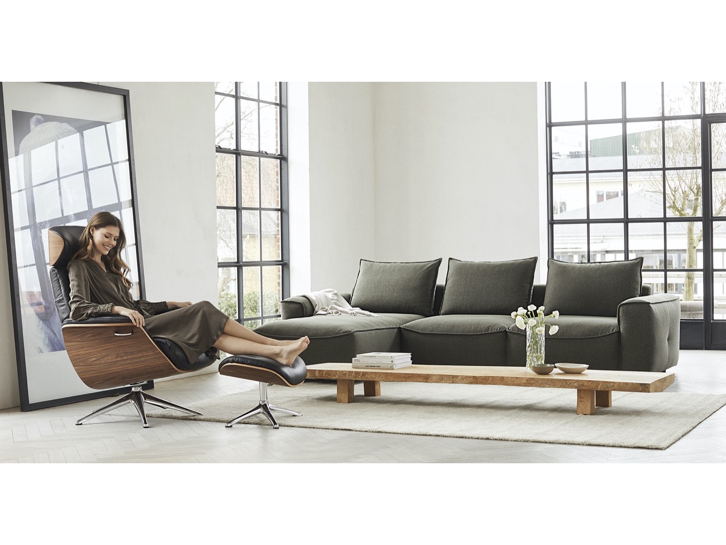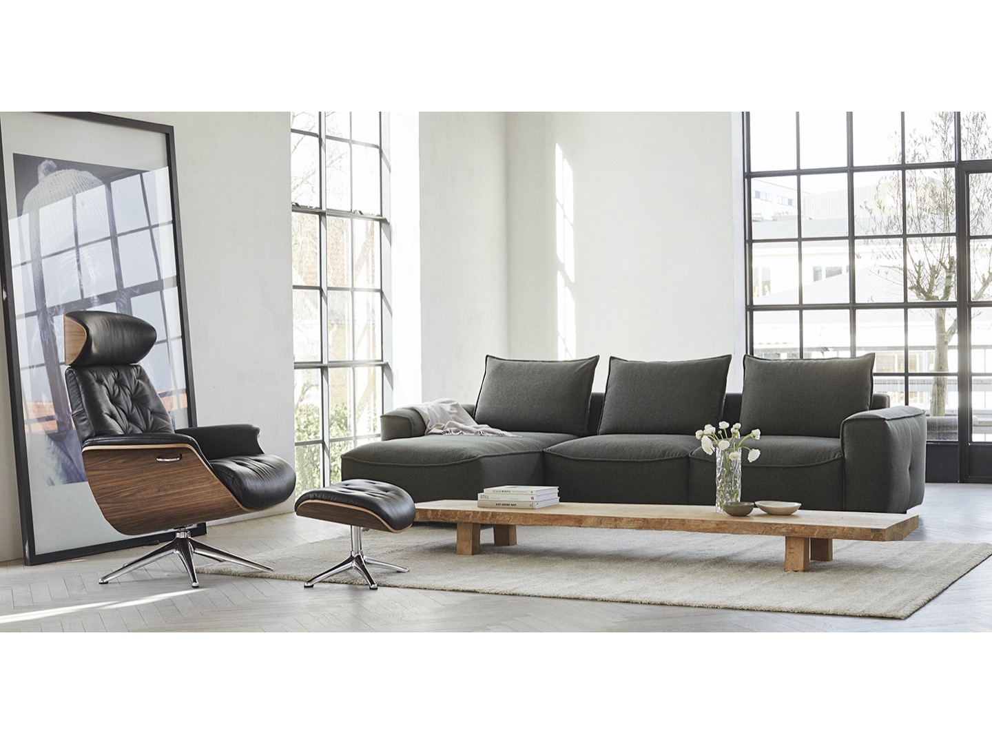 Volden Chaiselong został zaprojektowany z mechanizmem sprężyny, który umożliwia płynną i bezwysiłkową zmianę pozycji. Szezlong zapewni Ci spokojne miejsce na relaks i odpoczynek. Zagłówek ma regulowaną wysokość i kąt, aby uzyskać najlepszą pozycję do czytania, oglądania telewizji lub relaksu. Eleganckie aluminiowe nogi są dostępne w kolorze czarnym lub polerowanym aluminium.
