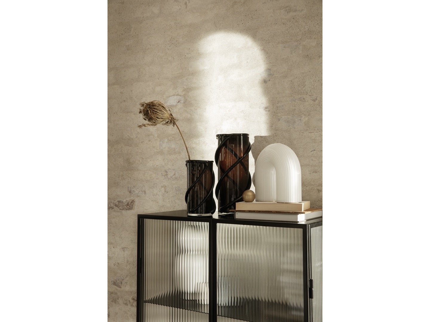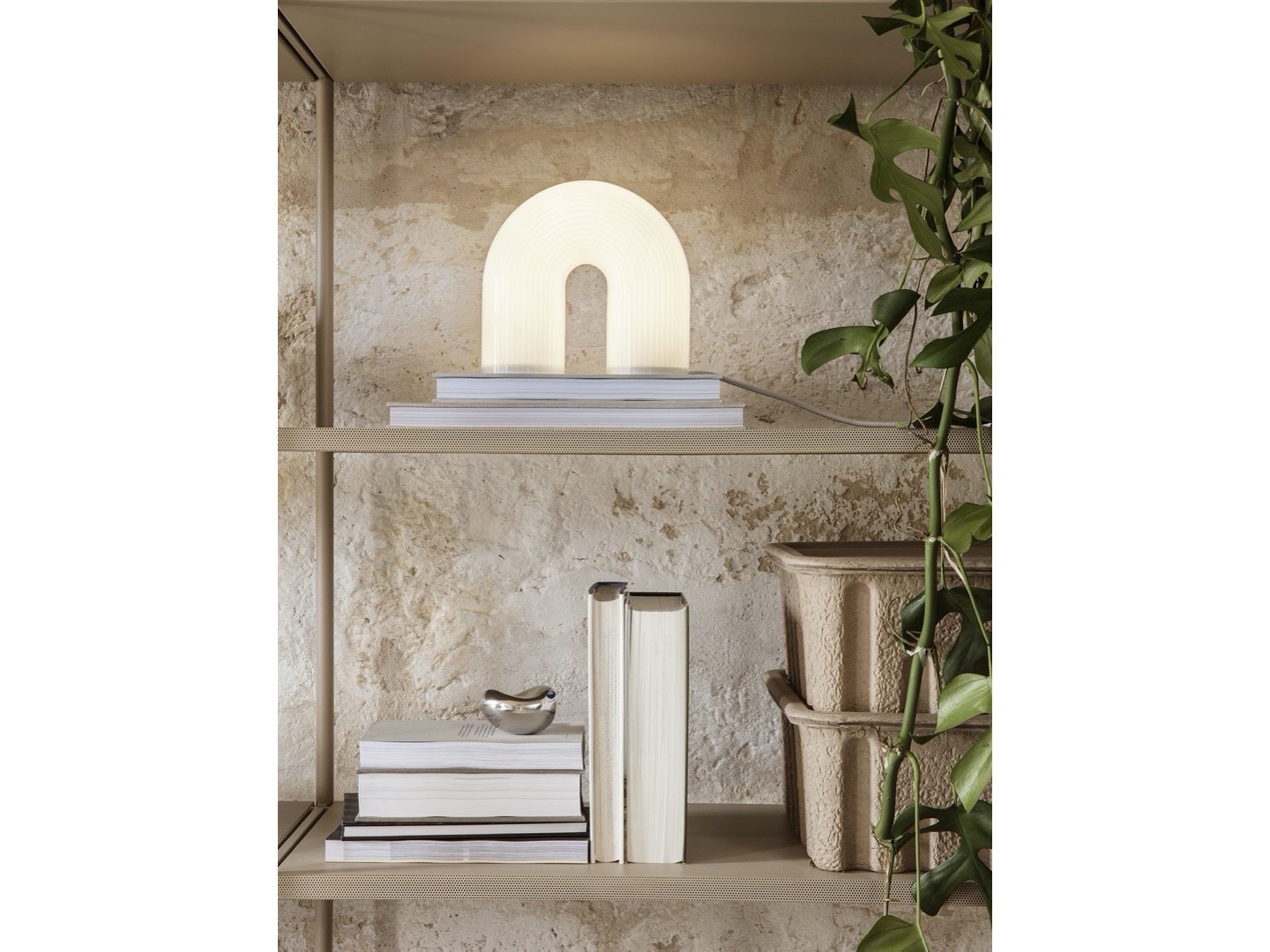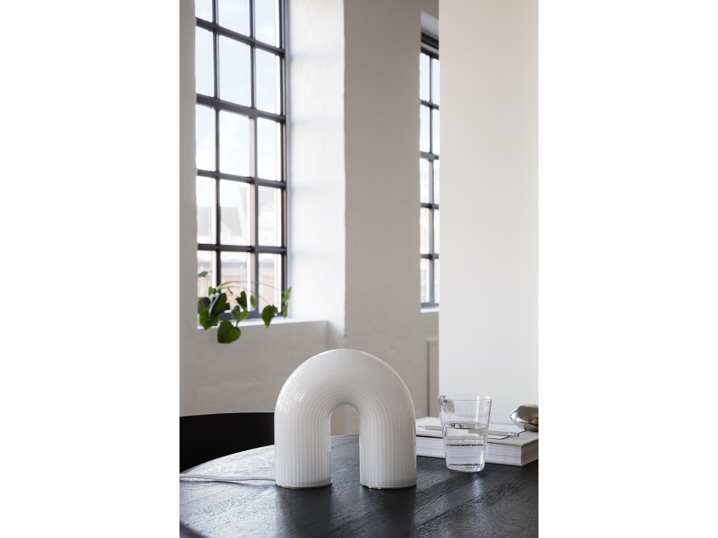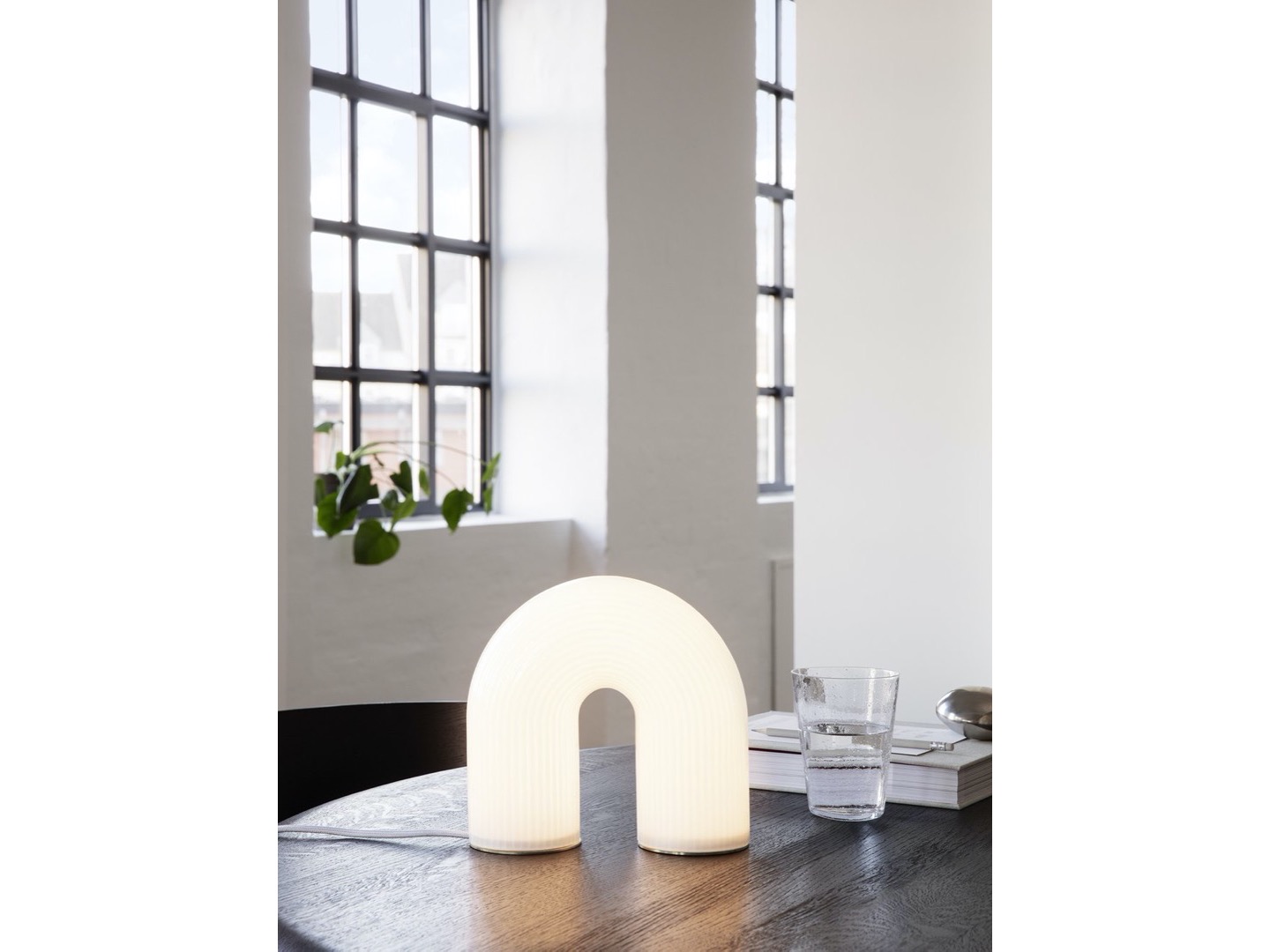 Bryłą lampy jest łuk przypominający starożytne kolumny.