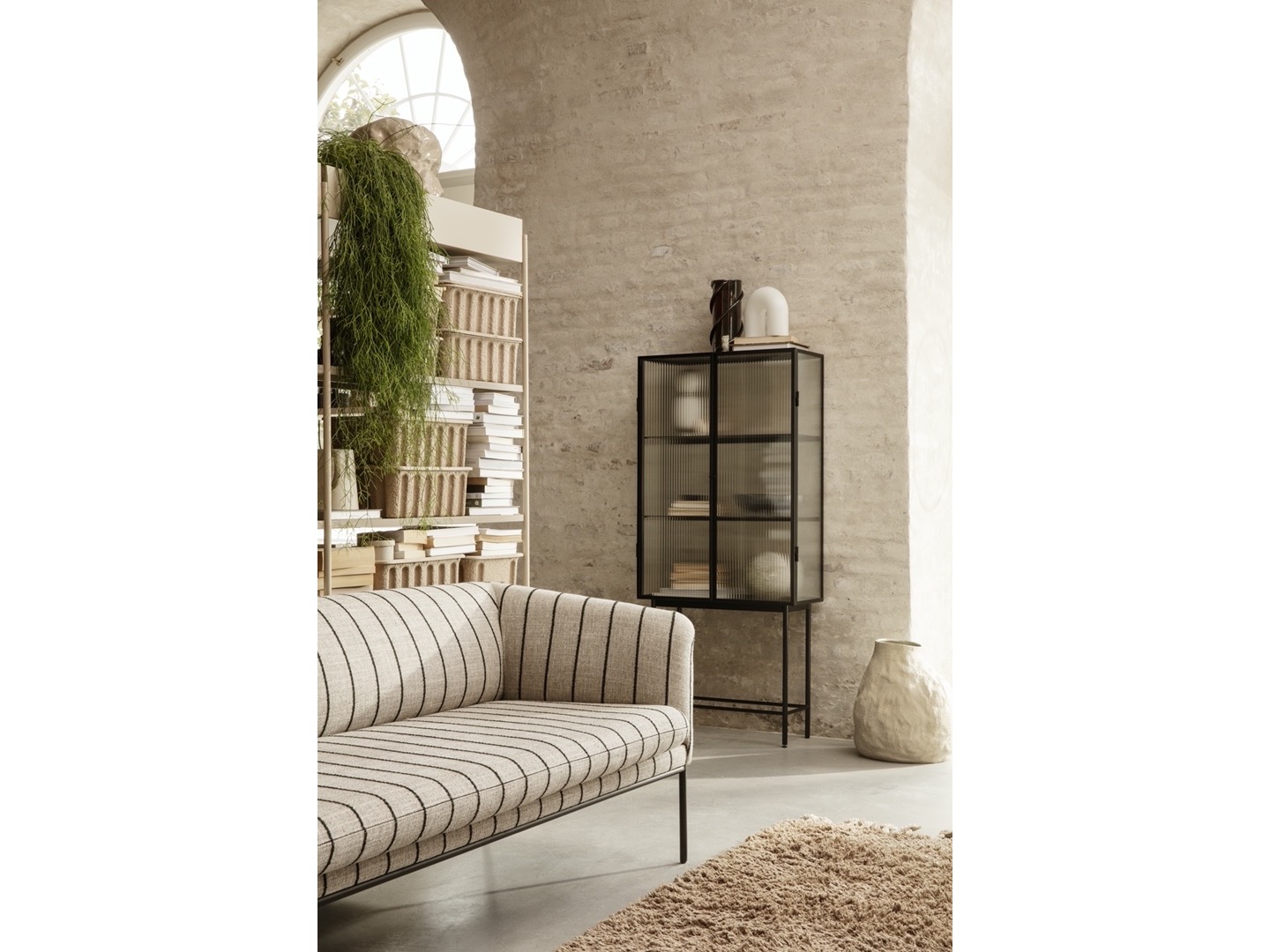 Lampa Vuelta jest wykonana z opalowego szkła z pofałdowaną powierzchnią, nadającą jej teksturę.