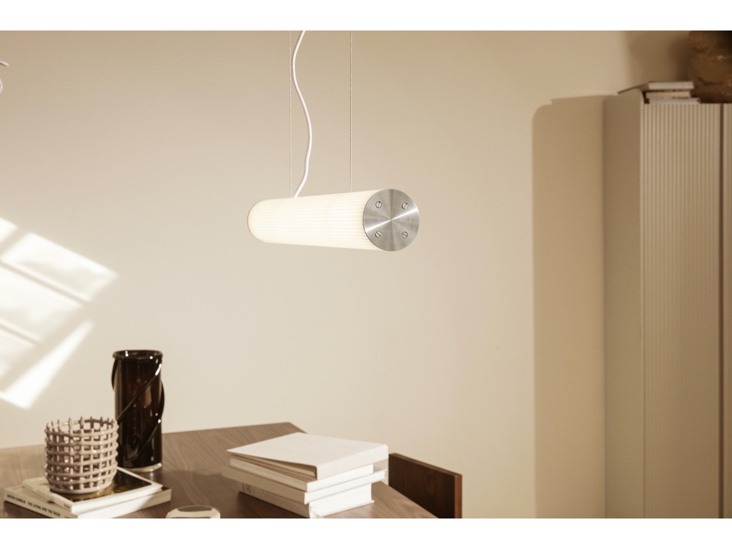 Łącząc złożoność tekstury z nowoczesną prostotą, kinkiet Vuelta ma cylindryczne przezroczyste opalowe szkło z wyraźną pofałdowaną powierzchnią i wykończeniem ze szczotkowanego metalu. Źródłu światła LED emituje miękkie, rozproszone światło. Kinkiet Vuelta jest wyposażony w regulowany pilot ze ściemniaczem, który zapewnia doskonałą kontrolę nad otoczeniem.