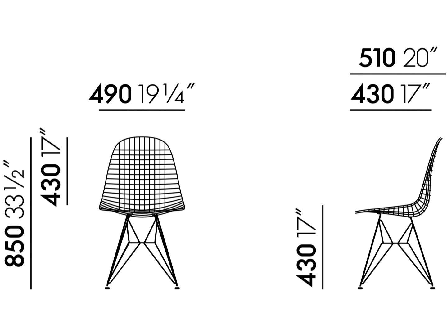 Projekt pochodzi z 1951r. Wire Chair to wariacja na temat organicznego kształtu. Krzesła są dostępne z tapicerką lub bez, z jedną poduszką lub z poduszką na oparcie i siedzisko.