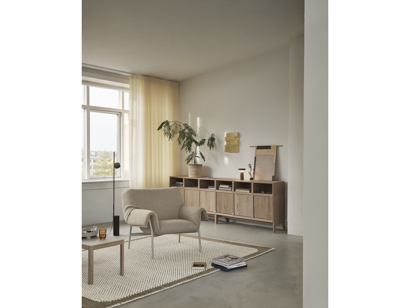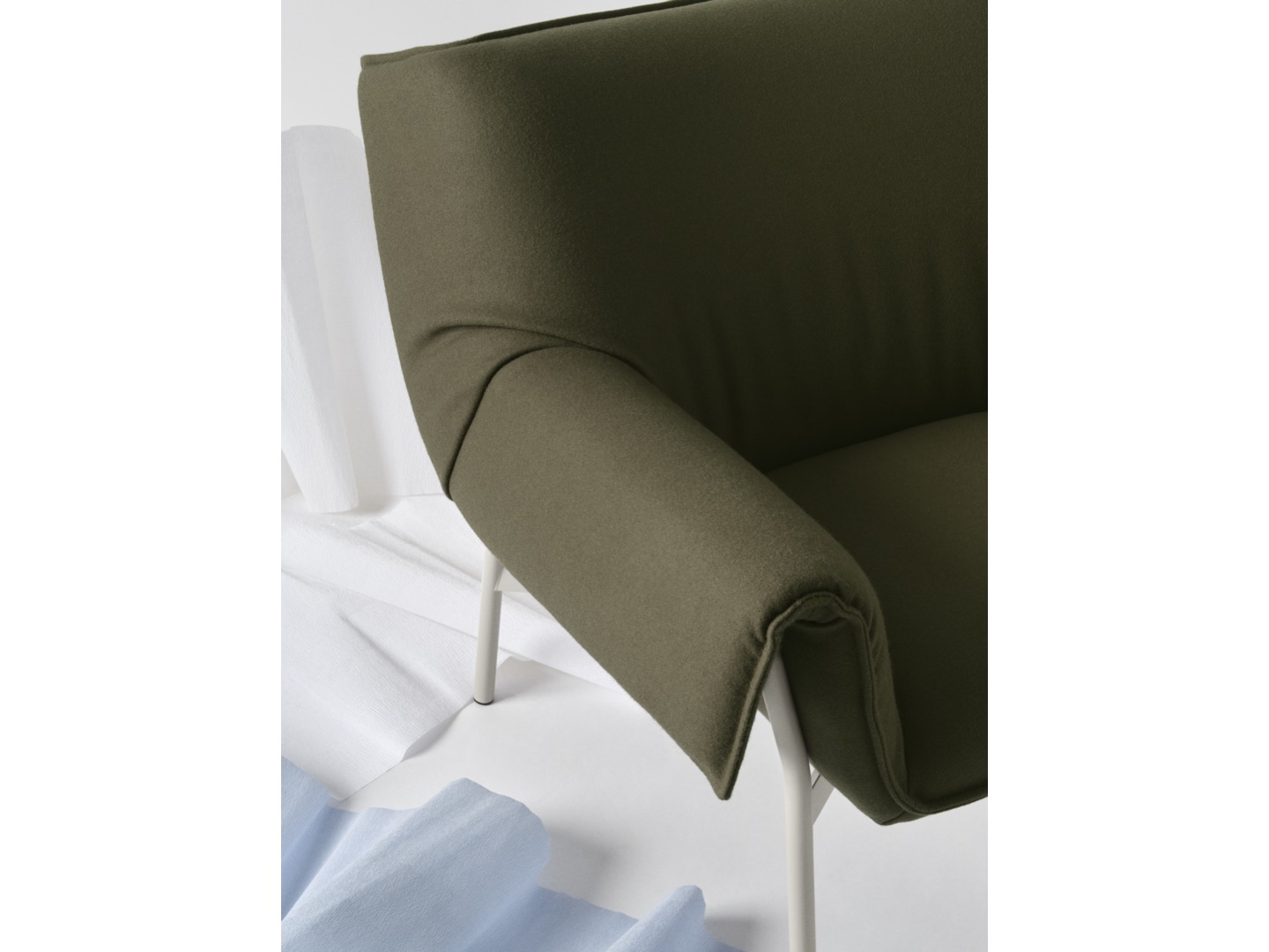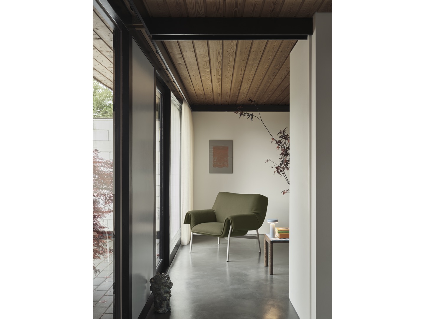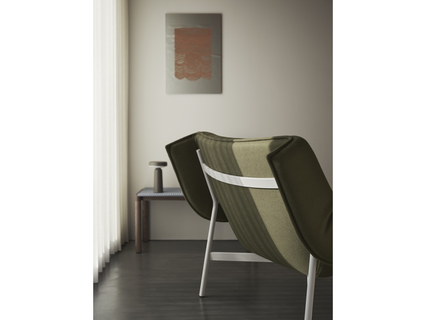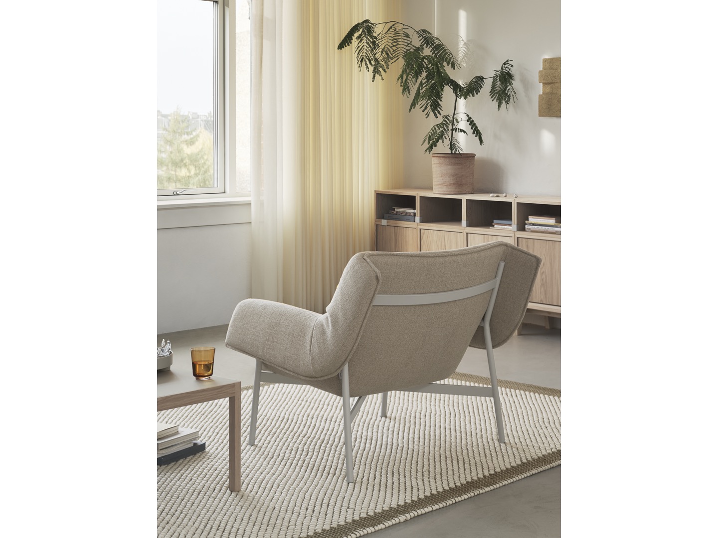 Wrap Lounge Chair ma ramę wykonaną ze stali malowanej proszkowo i obszerne obicie otulające siedzisko, zapewniając niezrównany komfort. Fotel ma wyjątkowy charakter, rozpoznawalny w każdym wnętrzu. Obicie i stalowa baza tworzą kontrastowy, ale jednocześnie przyjemny wygląd, idealny do stworzenia indywidualnego kącika do czytania.