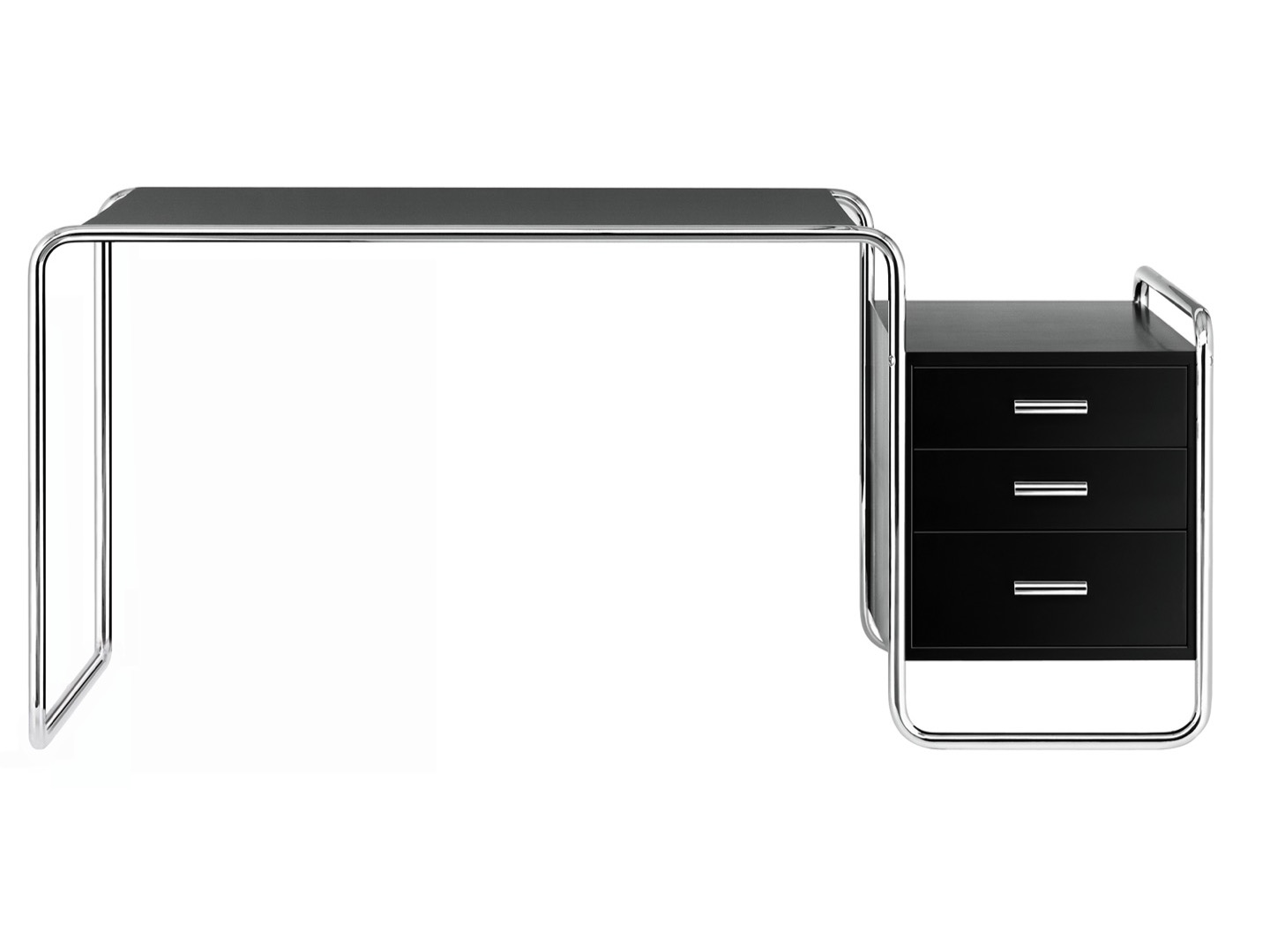 To tak, jakby Marcel Breuer przewidział dzisiejsze domowe biura i komputery przenośne: kompaktowe stalowe biurko S 285, które zaprojektował, jest eleganckim towarzyszem nowoczesnego stylu życia i pracy. Biurko na podstawie ze stalowych rur Marcela Breuera S 285 dla Thonet jest udanym przykładem dążenia Bauhausu do łączenia sztuki i technologii w całość. Breuer był z wykształcenia stolarzem i połączył swoją wiedzę z doświadczeniem w projektowaniu wnętrz. Blat i elementy do przechowywania wykonane są z drewna lakierowanego lub bejcowanego. Rama nośna składa się z zakrzywionej linii, a drewniane elementy charakteryzujące się wyraźnymi formami zdają się w niej unosić. Mebel o wyważonych formalnie proporcjach stanowi ważny element współczesnej historii, zwanej „Nowym Obiektywizmem”. Thonet produkuje różne wersje tego efektownego modelu.