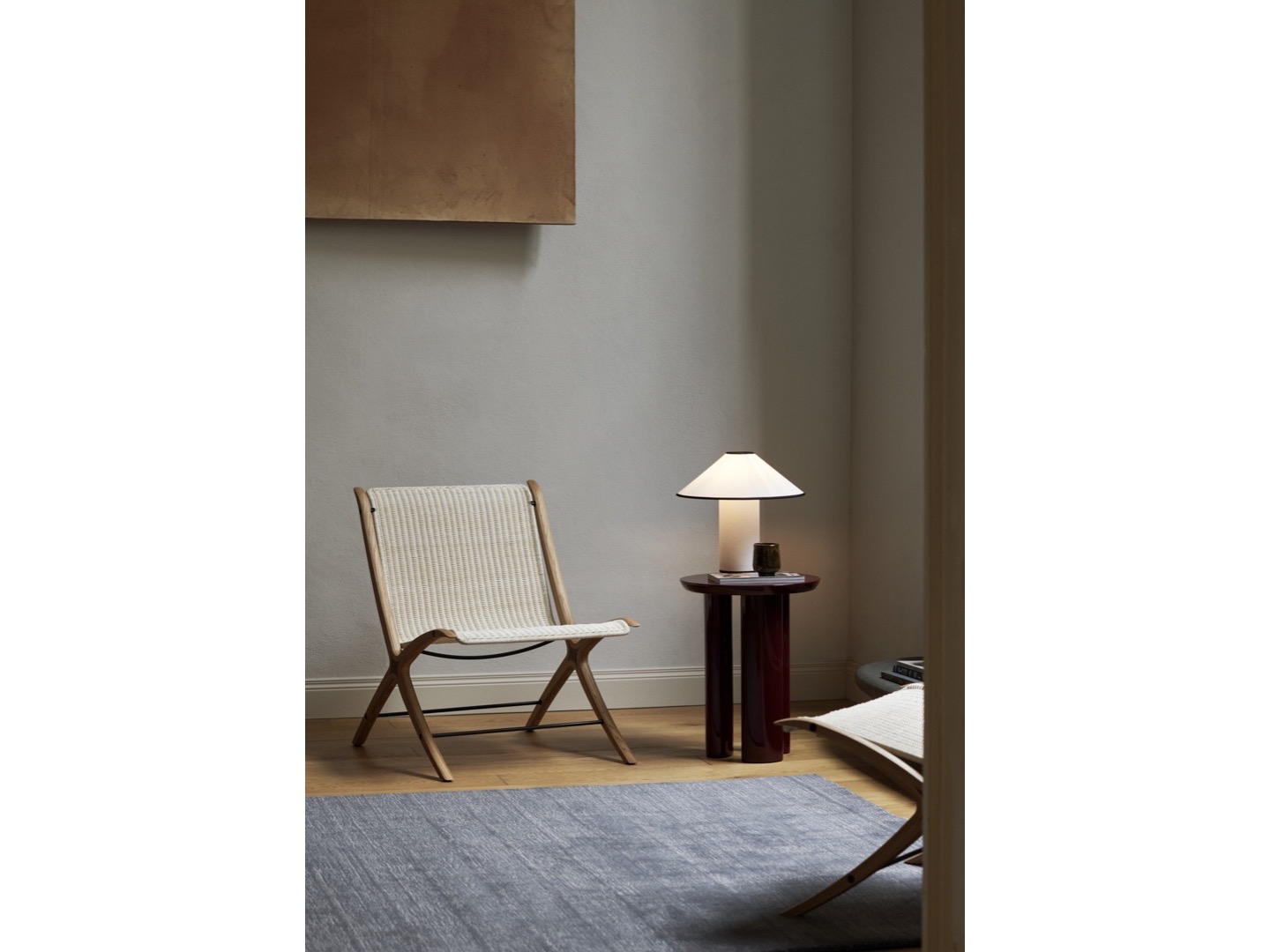 Po wieloletnich eksperymentach z koncepcją laminowanej drewnianej ramy inspirowanej starymi drewnianymi rakietami tenisowymi, duński duet projektantów Hvidt & Mølgaard wypuścił X w 1959 roku, fotel wypoczynkowy o charakterystycznej pochyłej sylwetce i dyskretnej estetyce.